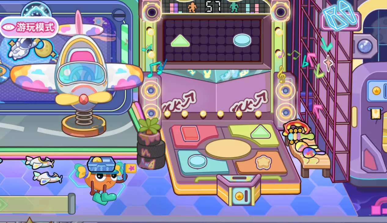 三台小游戏机分别可以体验大飞机打小飞机、恐龙跳跃、小鸟躲避障碍物跳。解锁怀旧小游戏。