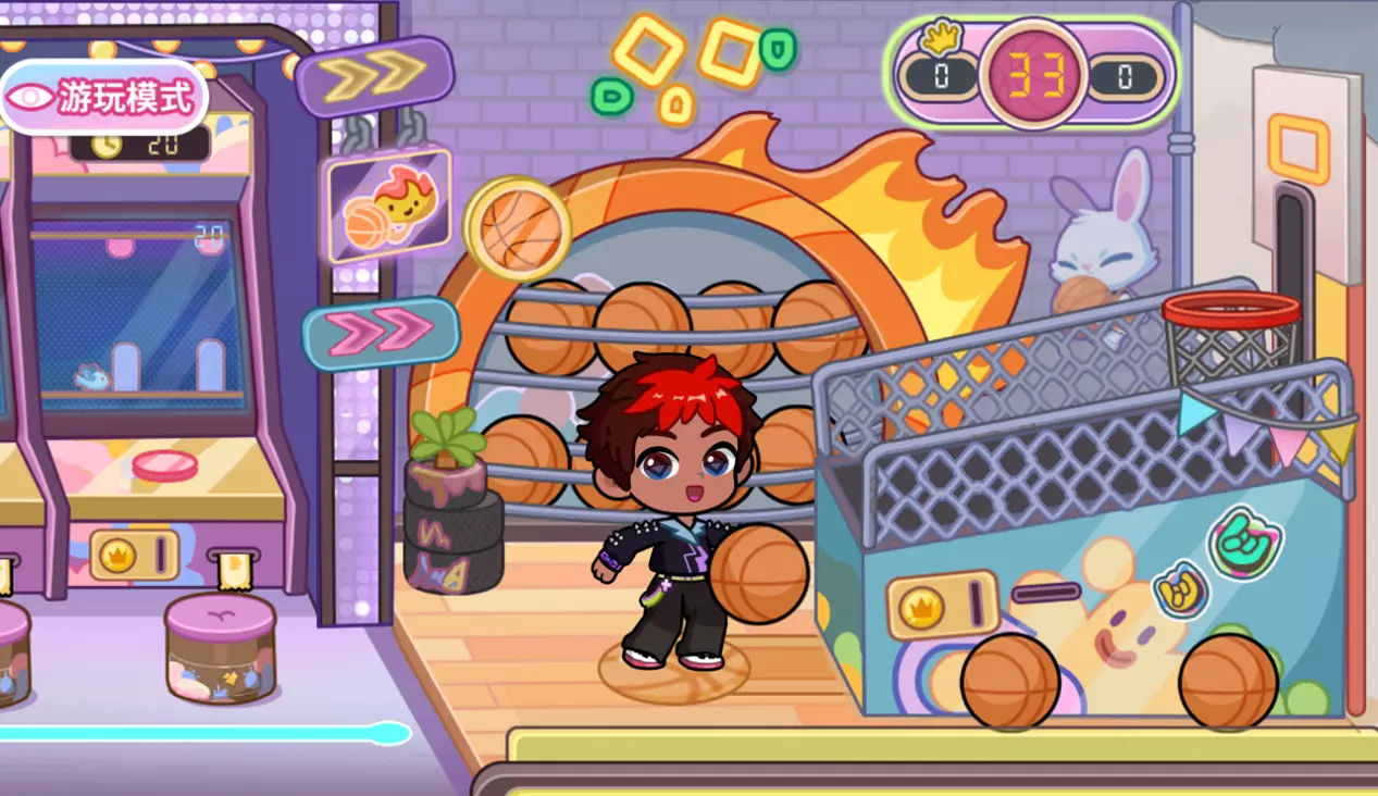 投币后可开启投篮,投中会累计分数。