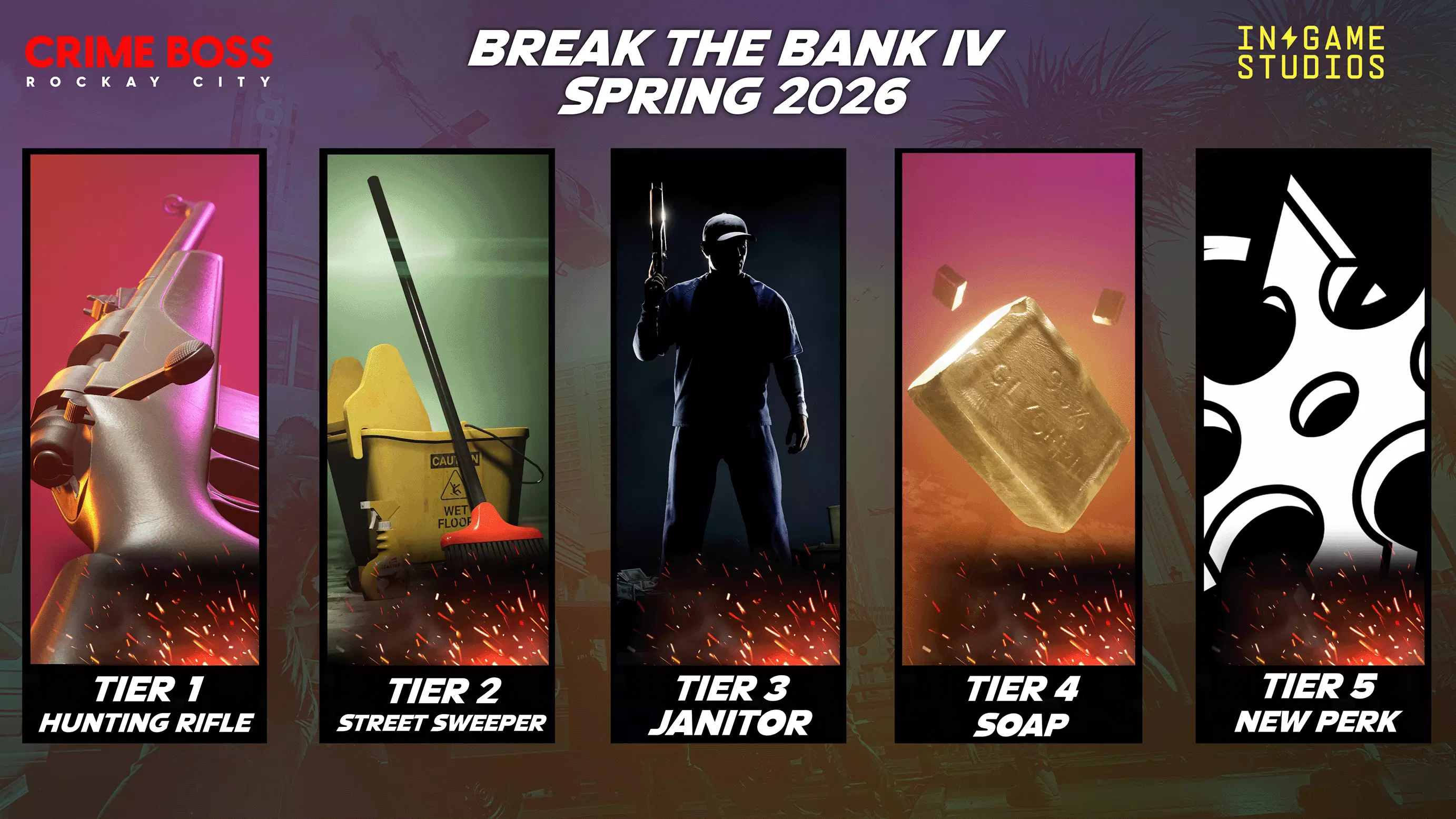 《黑帮老大》的【抢银行IV】社区活动于4月17日-27日开启,玩家在合作模式中盗取的总金额达到对应等级,可解锁狩猎步枪、清洁工角色等不同奖励,解锁物品会按登录情况自动添加或在活动后加入进度系统。