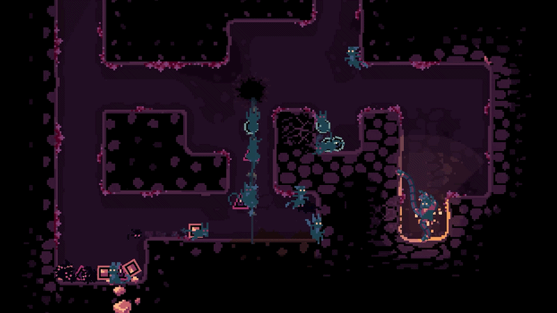 你可能已经注意到驯兽师那令人印象深刻且超酷的触手手臂了。它们不只是用来召唤猫哥布林的,你还可以借助它们在矿井中移动。这使得驯兽师的移动方式与其他守护者类似,但有一个很大的区别:你需要触手能够抓住的方块。这意味着你不能无脑破坏所有方块。巨大的空旷区域可不是驯兽师或她的猫哥布林的朋友。