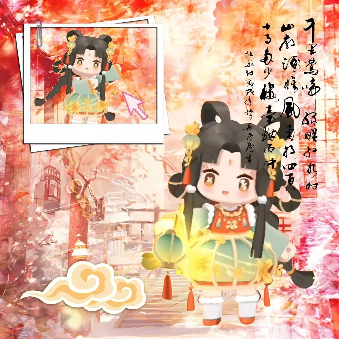 这是迷你世界的国风创作作品,展示了国风装扮的迷你角色甜甜铃铛,搭配古风场景与元素,尽显国风韵味,参与了国风创作征集活动。