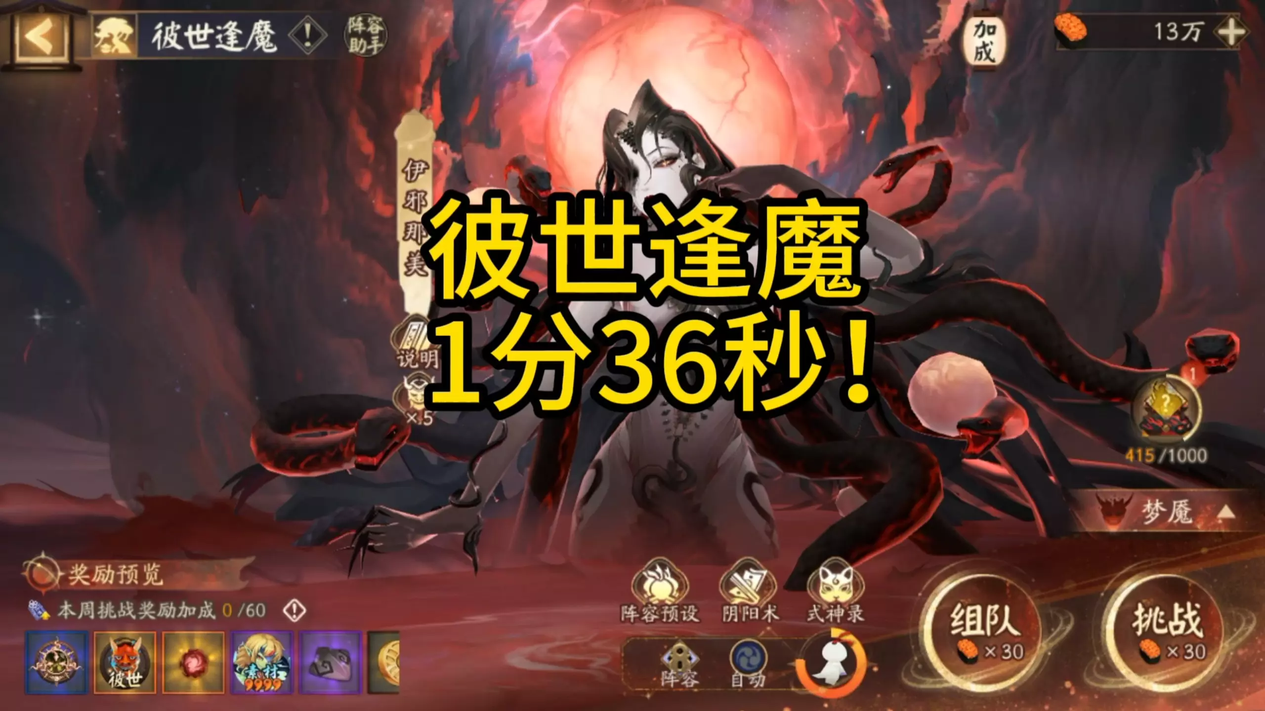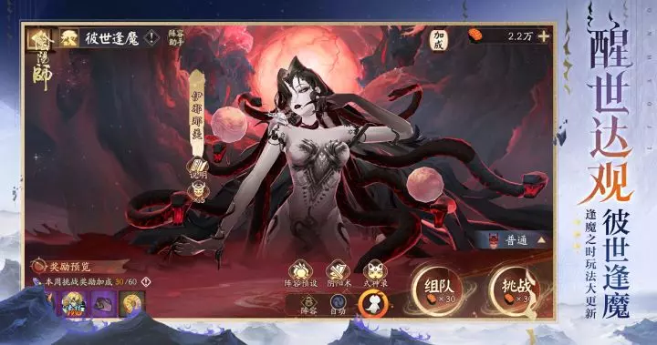 ※大人可消耗「体力」挑战首领伊邪那美,副本设有「普通」、「困难」、「梦魇」三档难度,通关上一难度后依次解锁,难度越高,通关奖励越丰厚。