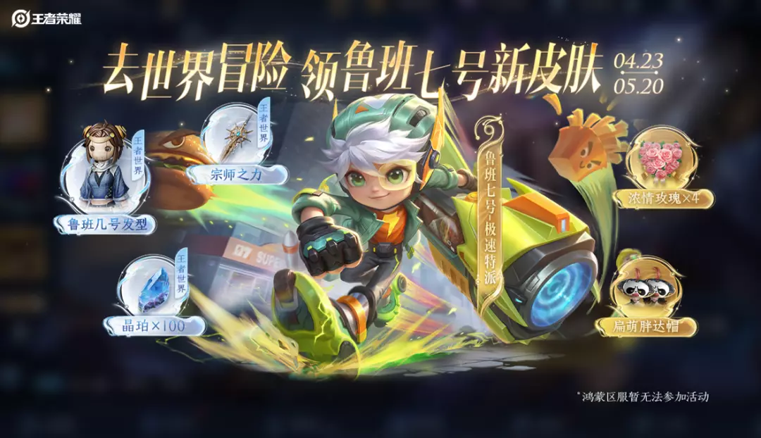 💝活动奖励:王者荣耀鲁班七号-极速特派皮肤、元流之子-扁萌胖达帽、浓情玫瑰,王者世界-鲁班几号发型、宗师之力外观、晶珀