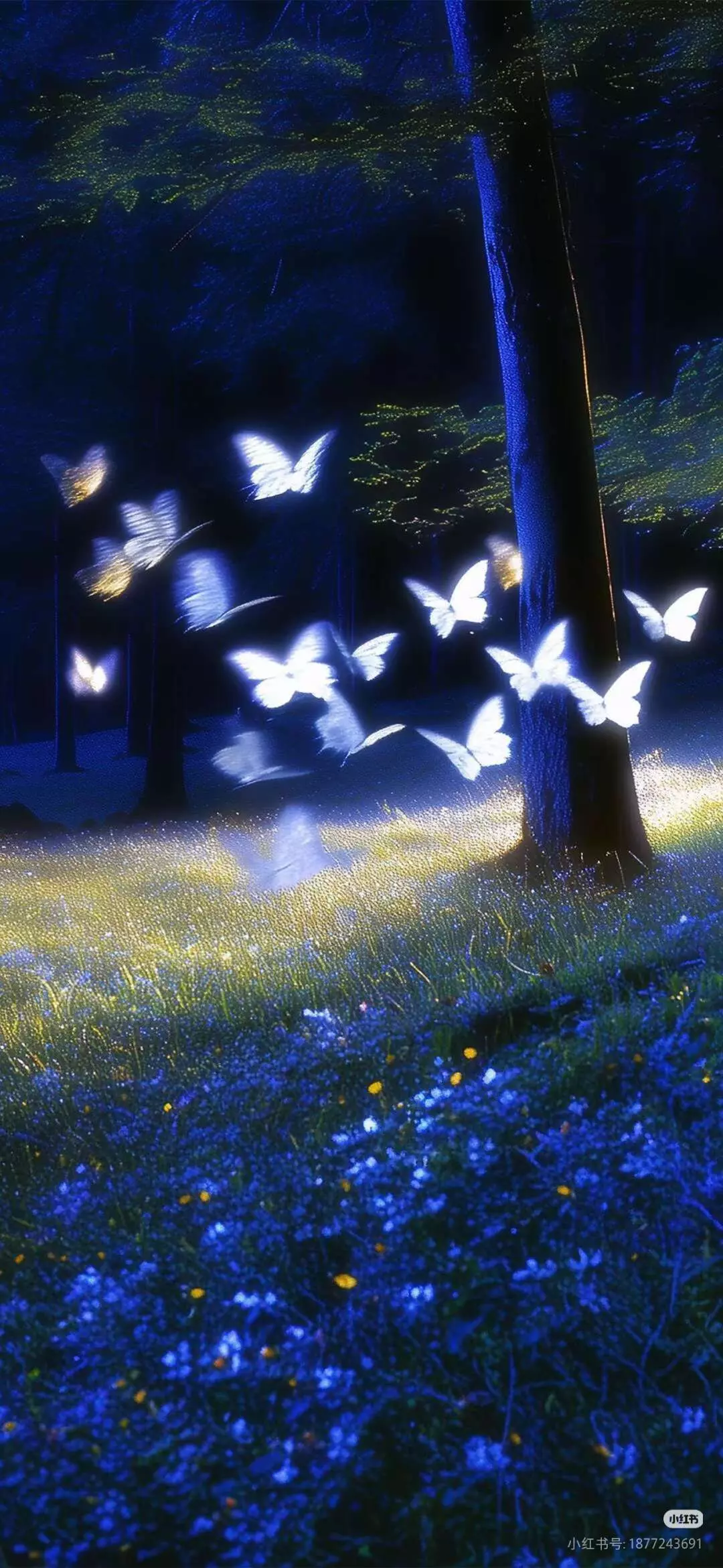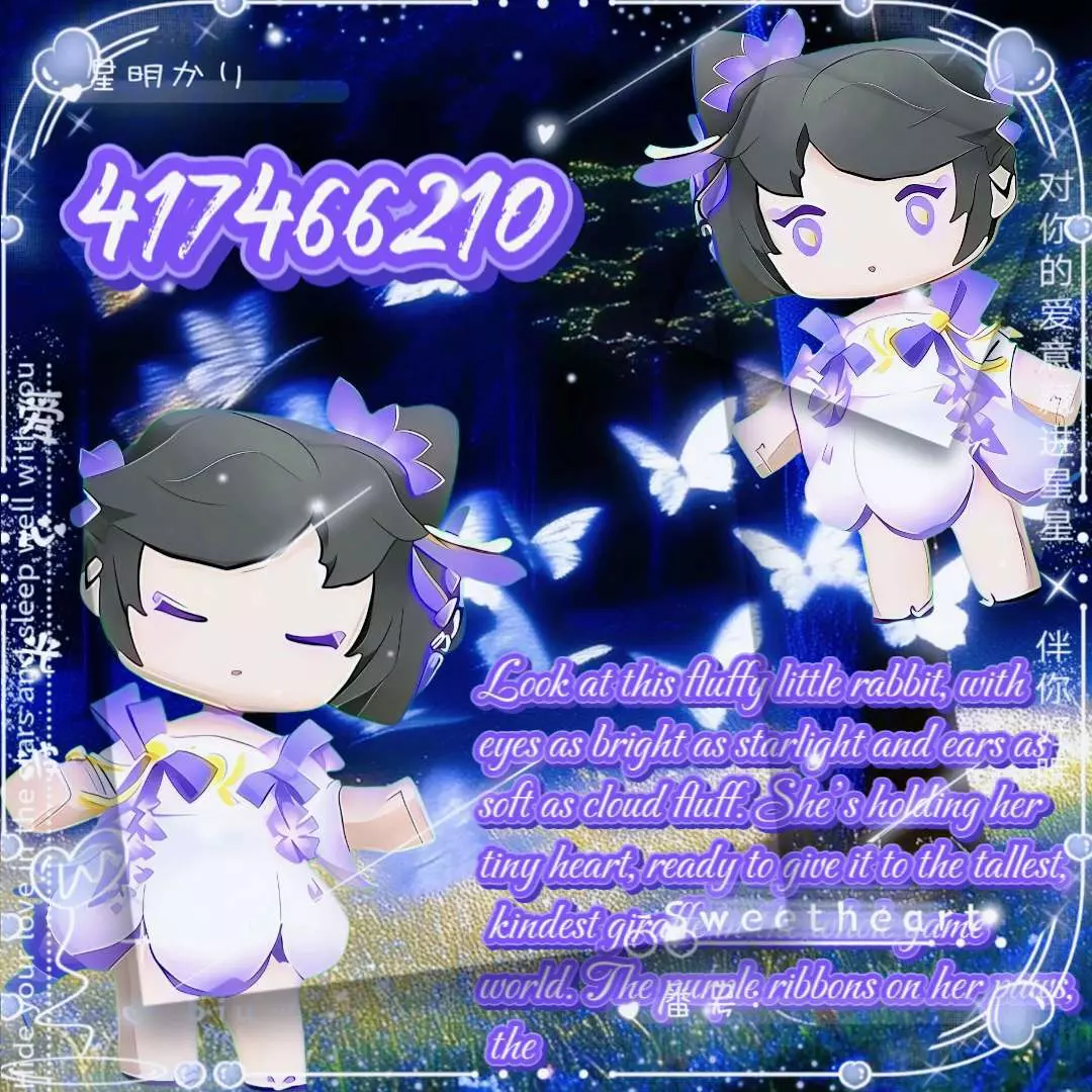 这是一篇迷你世界社区的共建帖,展示了带有紫白配色、风格神秘浪漫的原创迷你世界角色,搭配暗夜蝴蝶的梦幻背景,作者申请精华与周刊收录,充满氛围感。
