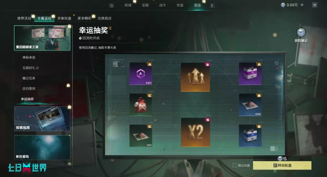 除了直接领取的见面礼,我们还全新上线了回归专属的【幸运抽奖】活动!回归的超越者们只需在游戏内保持活跃,参与日常探索、副本挑战等玩法,即可源源不断地获取专属代币——回流徽记。消耗回流徽记即可参与转盘抽奖,抽取海量高价值奖励。活跃越多,抽奖机会越多,让您的回归之旅满载而归!