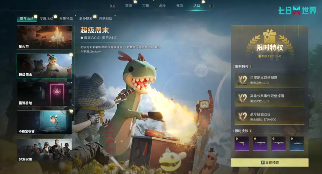 奈科特大陆的周末迎来了丰厚馈赠!为了助力超越者们更快速地成长与储备物资,本次更新后,【超级周末】活动将新增限时双倍权益!