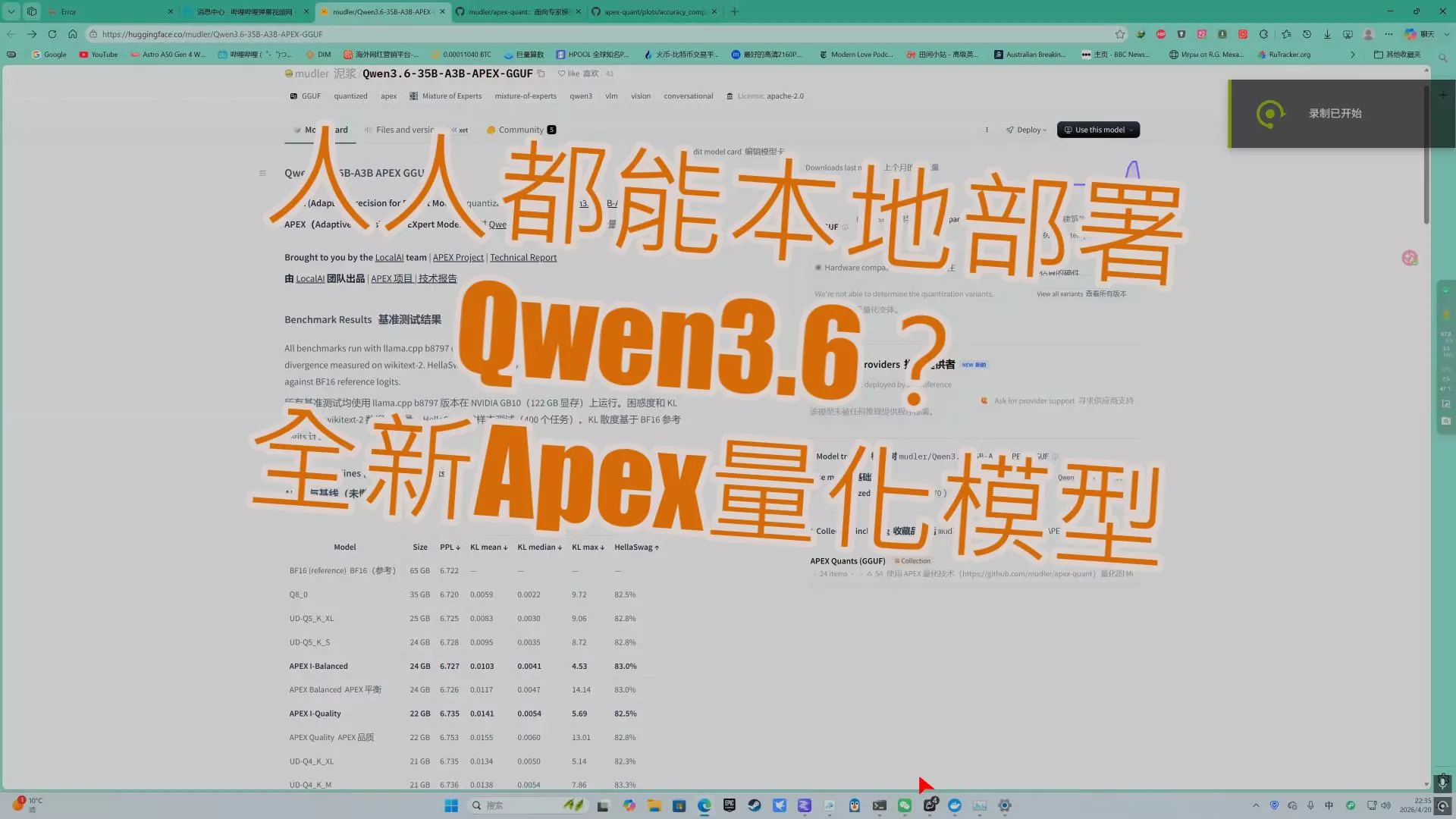 Qwen3.6 35B APEX量化:mudler/Qwen3.6-35B-A3B-APEX-GGUF · 拥抱脸 --- mudler/Qwen3.6-35B…