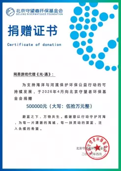 为助力河流与海洋保护公益行动长效开展,《光・遇》于 2026 年 4 月向北京守望者环保基金会捐赠50万元,专项用于全国净滩行动、生态科普教育、青年环保志愿培育等工作,以实际行动为河海生态保护注入可持续动力。