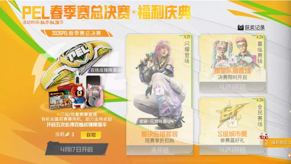 PEL春季赛总决赛福利庆典开启,全战队猎星队服将于4月24日返场,这款队服兼具力量感与轻盈感,以队伍LOGO彰显团队魅力,同时还有观赛抽奖、套装折扣购等福利活动。