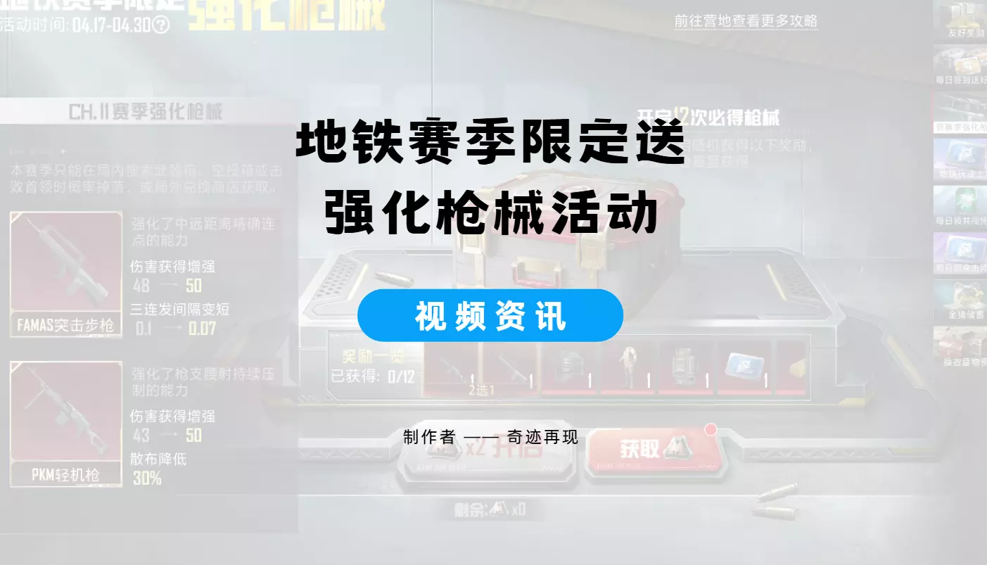 4.地铁送强化枪械活动开启,一期视频带你了解强化枪械获取方式!