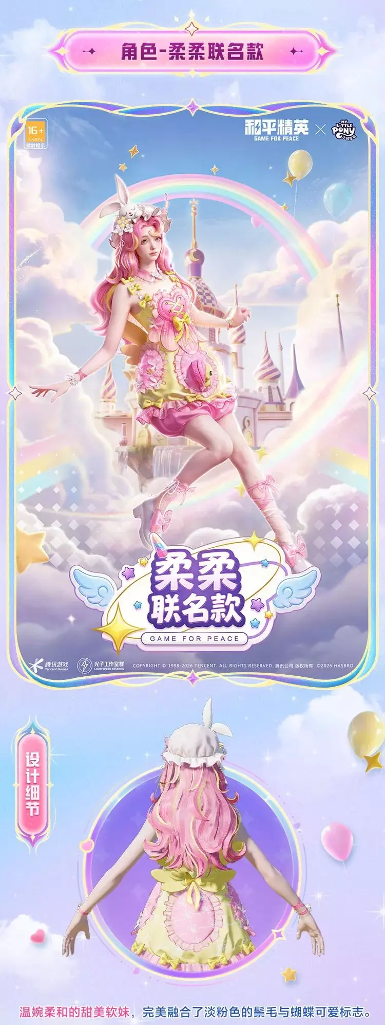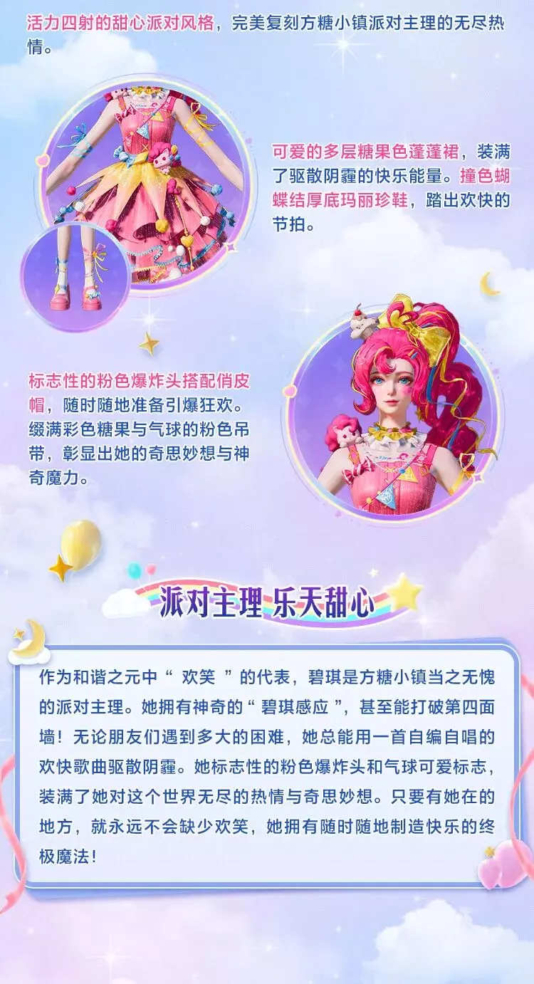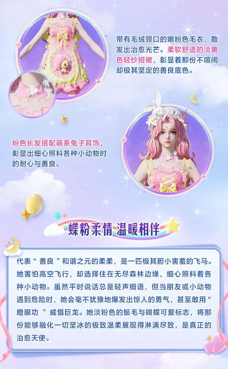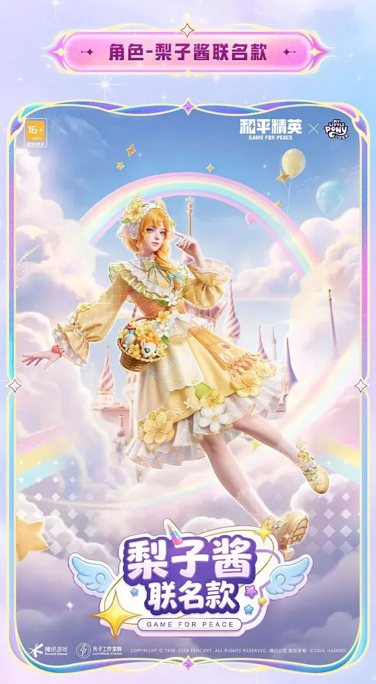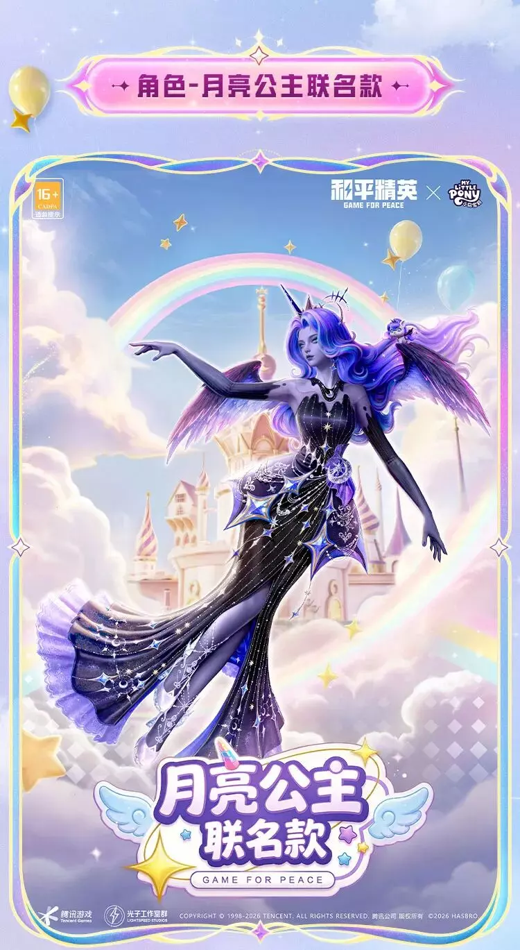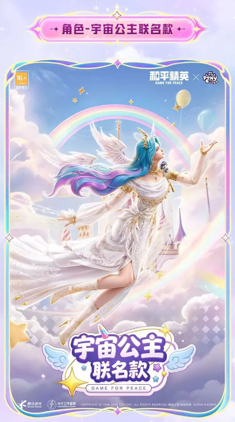和平精英将在4月24日上线官方正版授权的小马宝莉联动系列角色,包含月亮公主、宇宙公主、柔柔等多款联名皮肤,各皮肤还原了对应小马的风格与故事,将友谊魔法带到游戏中。