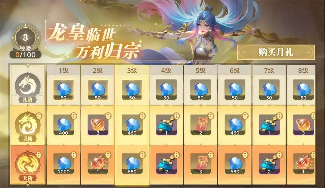 ➢ 活动简介:活动期间,魂师可通过完成月礼任务提升月礼等级,解锁免费钻石奖励;此外,购买灵阶月礼或天阶月礼,可额外获得大量钻石、SR魂核、魂环强化概率材料等养成道具。