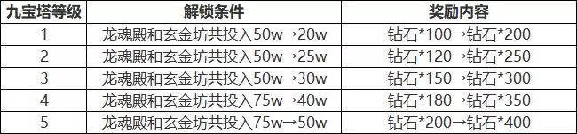 ➢ 宗门建设优化:调整宗门建设九宝塔建设(建设后可领取宗门每周钻石奖励)所需门槛和奖励内容如下:
