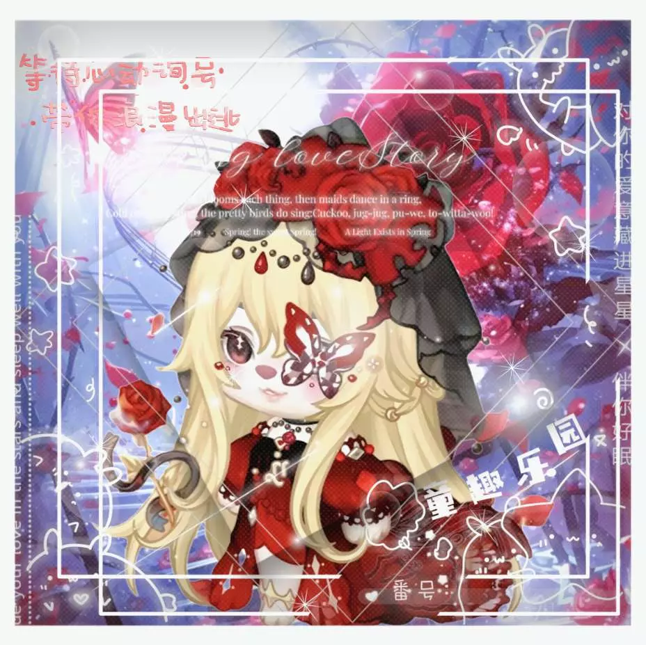 这是一组奥比岛主题美图,展示了搭配红玫瑰元素的奥比岛角色穿搭,以红玫瑰为核心元素,打造出兼具童趣与浪漫偏执风格的视觉内容,画面氛围感十足。