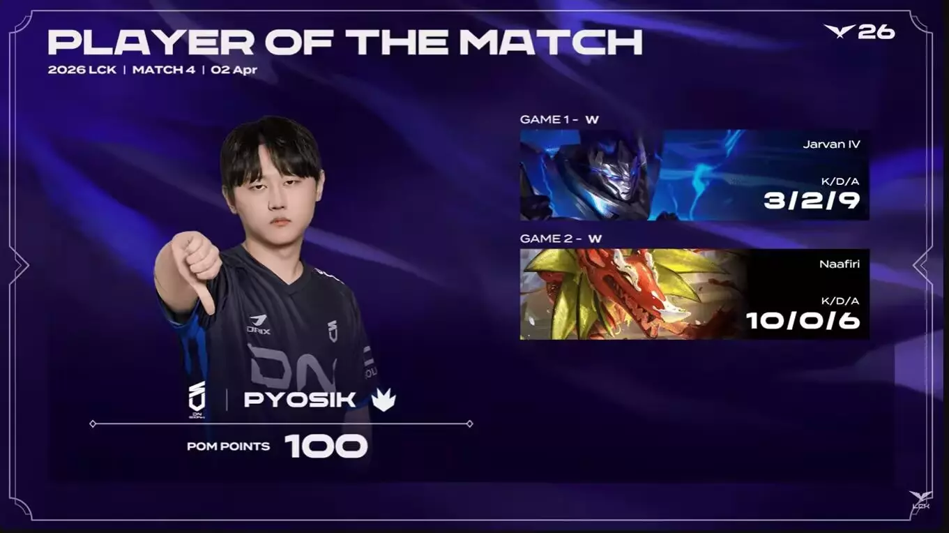 LCK第二赛段常规赛,已经开赛两天了,KT和HLE相继拿到首胜之后,实力接近垫底的KRX(DRX改名)和NDS,也迎来了首场比赛,这两队只打了2局,就分出胜负了…