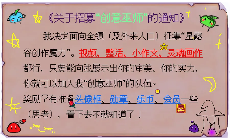 根据《星露谷物语》游戏进行创作,创作内容不限,大家可以发挥自己的灵感!(以下是一些类型参考)