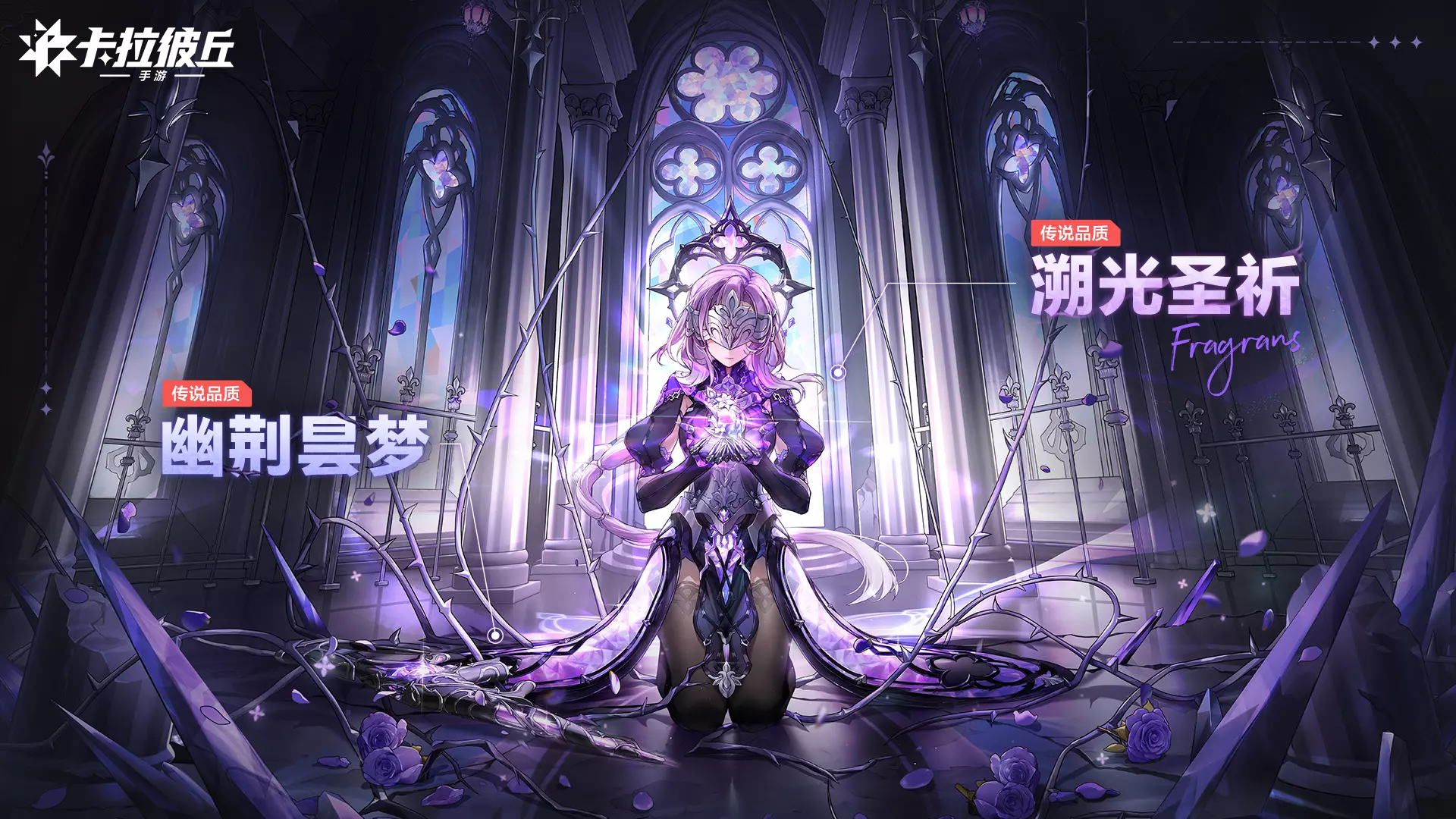 手游《卡拉彼丘》推出传说品质的珐格兰丝-溯光圣祈套装,同时配套同品质的幽荆昙梦武器外观,套装风格华丽,带有祈祷相关的剧情台词。