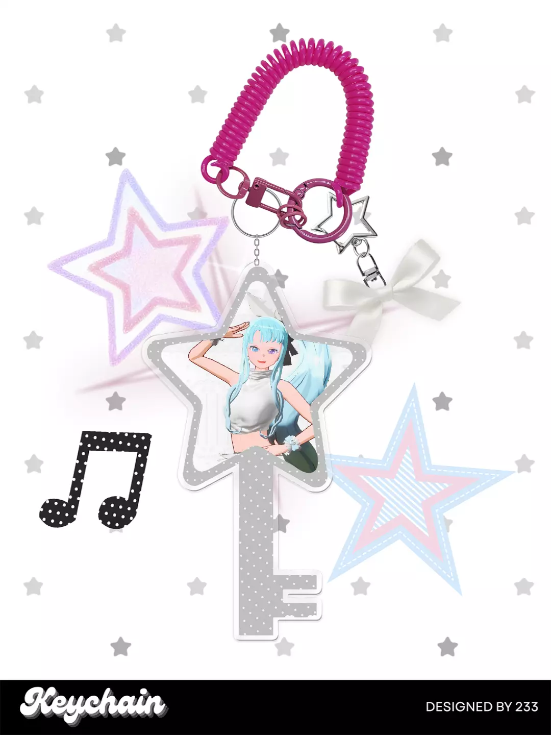 这款以吗喽形象设计的钥匙扣,造型别致,搭配玫红色弹簧挂绳与星星装饰,颜值在线,依旧保留了吗喽的可爱感,是很有特色的周边钥匙扣。