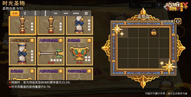 体验时光秘藏时,小骑士可能会获得具有强大力量的“时光圣物”。
