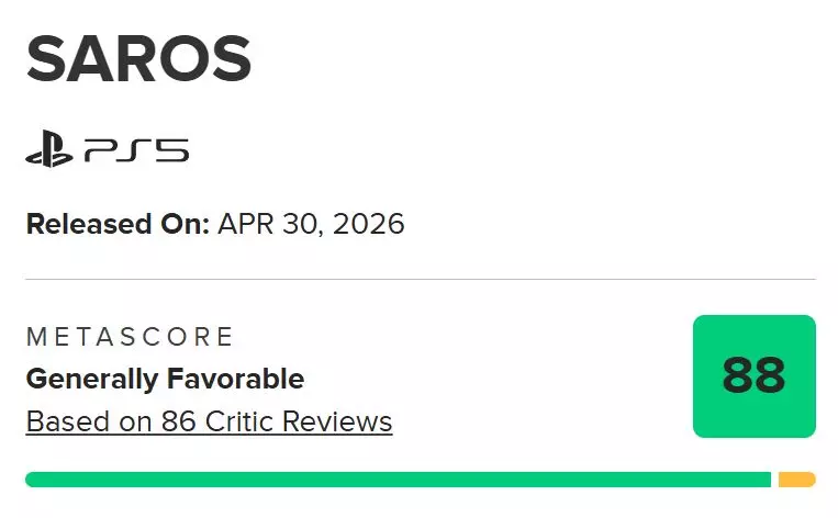 由《死亡回归》开发商Housemarque打造的PS5独占游戏《沙罗周期》全球媒体评分正式公布。根据Metacritic数据显示,本作PS5版目前获得88分(基于86家媒体评测).