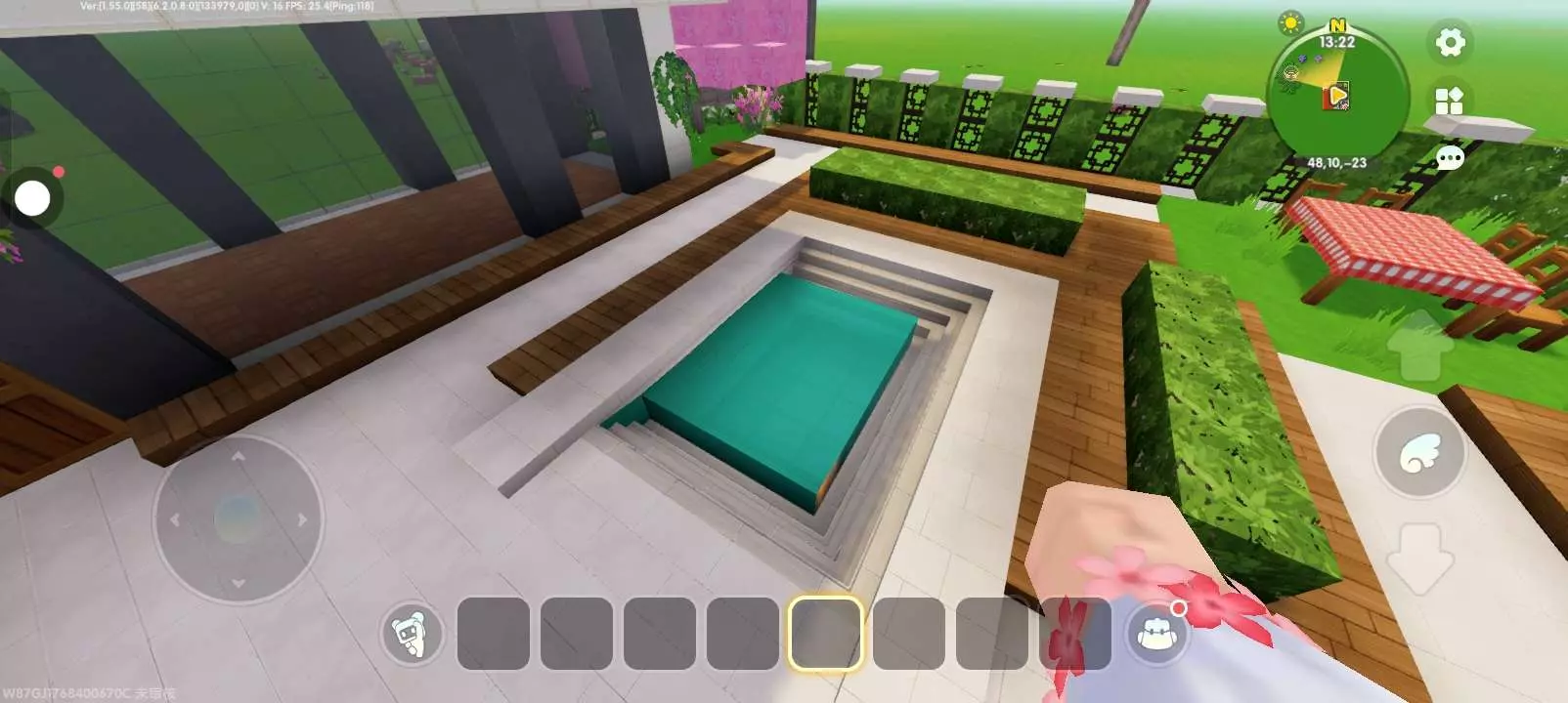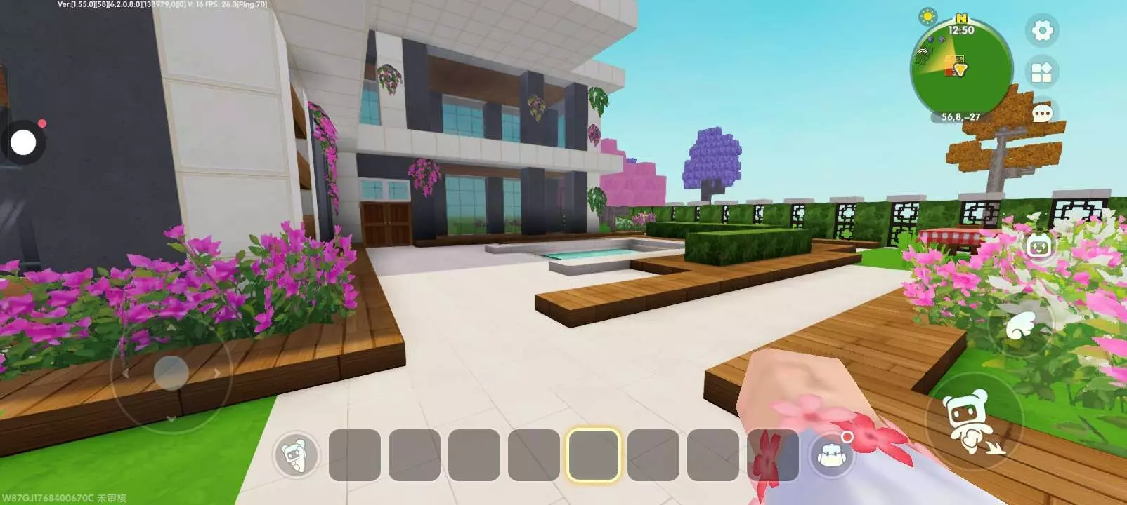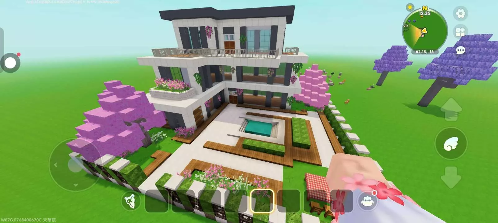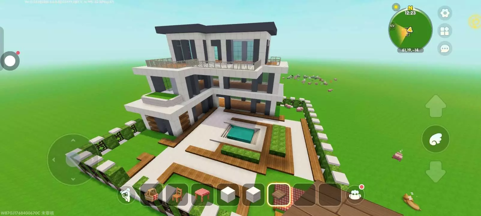 这是迷你世界社区的玩家分享帖,展示了在迷你世界中搭建的现代风格别墅,别墅带有精致的庭院景观,包含泳池、花植装饰等,作者申请精华、月榜等推荐。