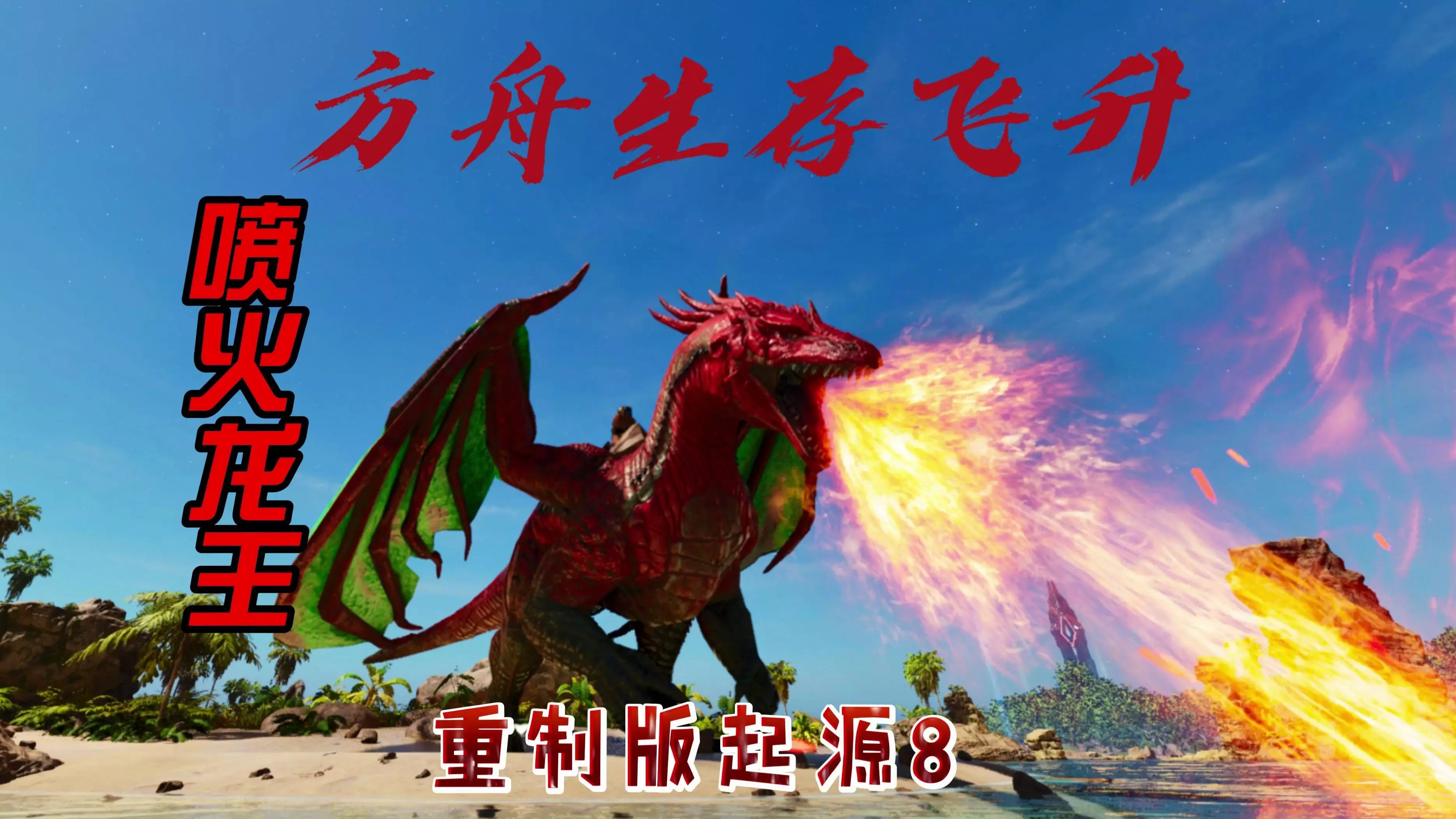 这是《方舟:生存飞升》的游戏内容,玩家在游戏里偶遇超帅的火焰翼龙,还击败了元素三角龙解锁了饲料,过程中使用模组毒箭,还有代步用的普通翼龙。