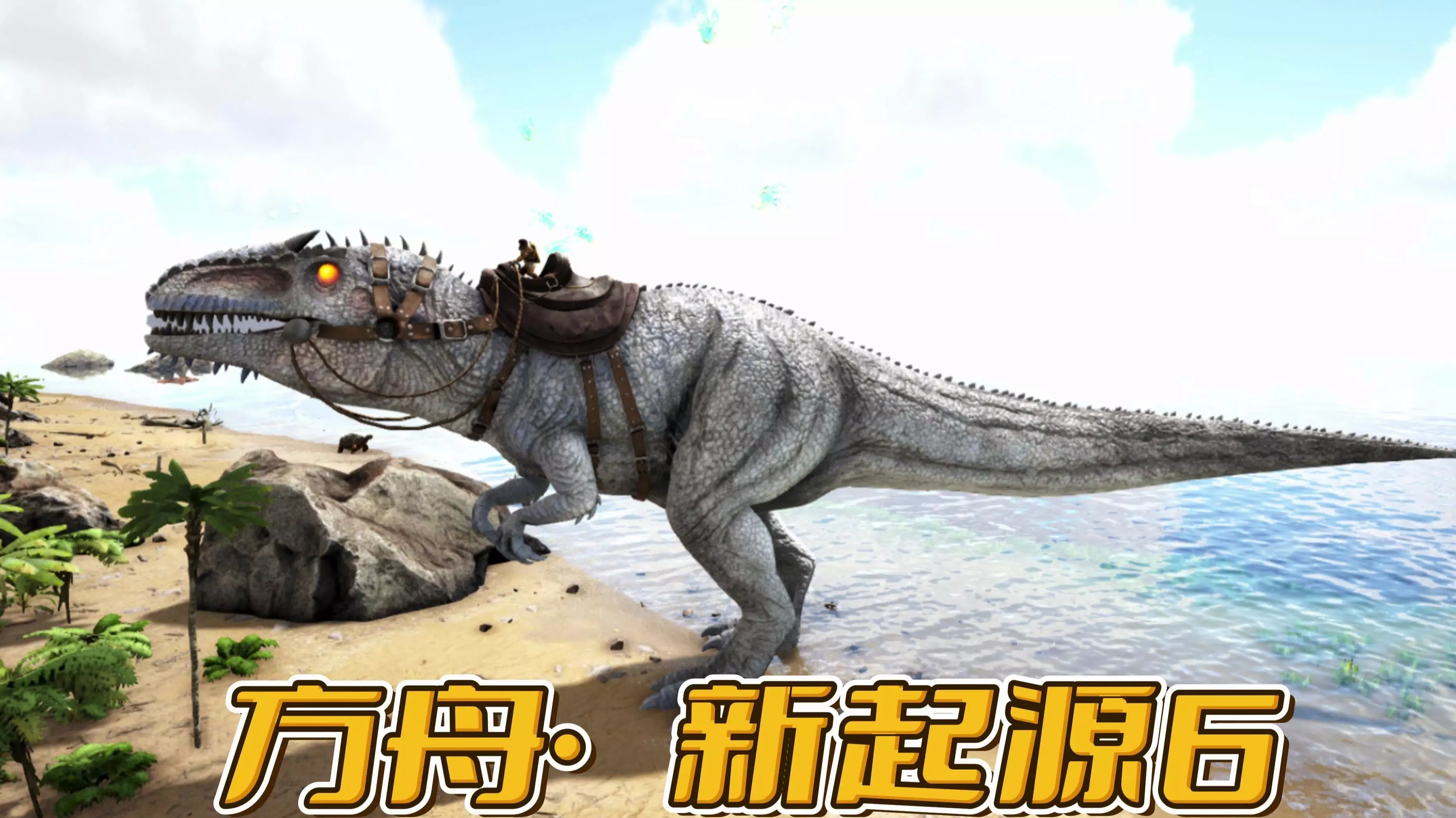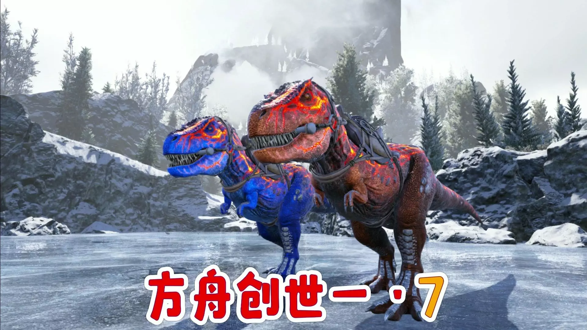 这是《方舟:创世一》的游戏内容,玩家尝试培育二代变种霸王龙,过程中实施偷蛋操作但首次尝试失败,还展示了与变种霸王龙的互动、游戏内的属性面板等内容。