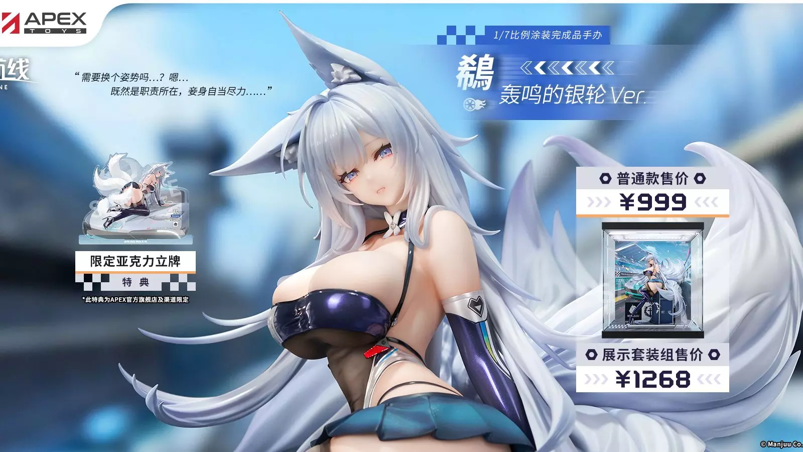 出自热门游戏《碧蓝航线》的「鵗」以换装「轰鸣的银轮Ver.」手办化登场~【碧蓝航线 鵗 轰鸣的银轮Ver.】1/7比例手办4月30日开启预售! 身着赛车女郎装束…