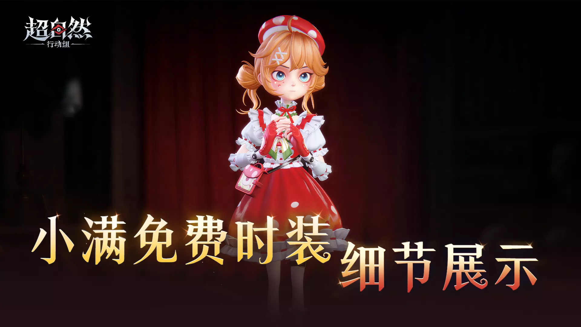 《超自然行动组》推出免费典藏时装【小满-童话息语】,该时装以蘑菇为主题,是童话风格设计,有红白色系蓬蓬裙、蘑菇小包等细节。4月30日起玩家登录即可领取,摸金节可体验该时装。