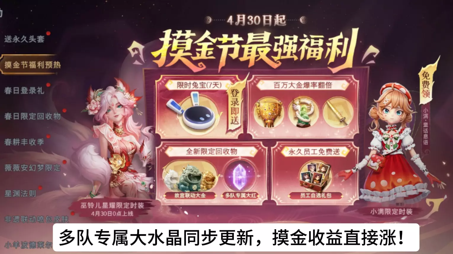 4月30日起登录就领,摸金节一起来找她玩吧!