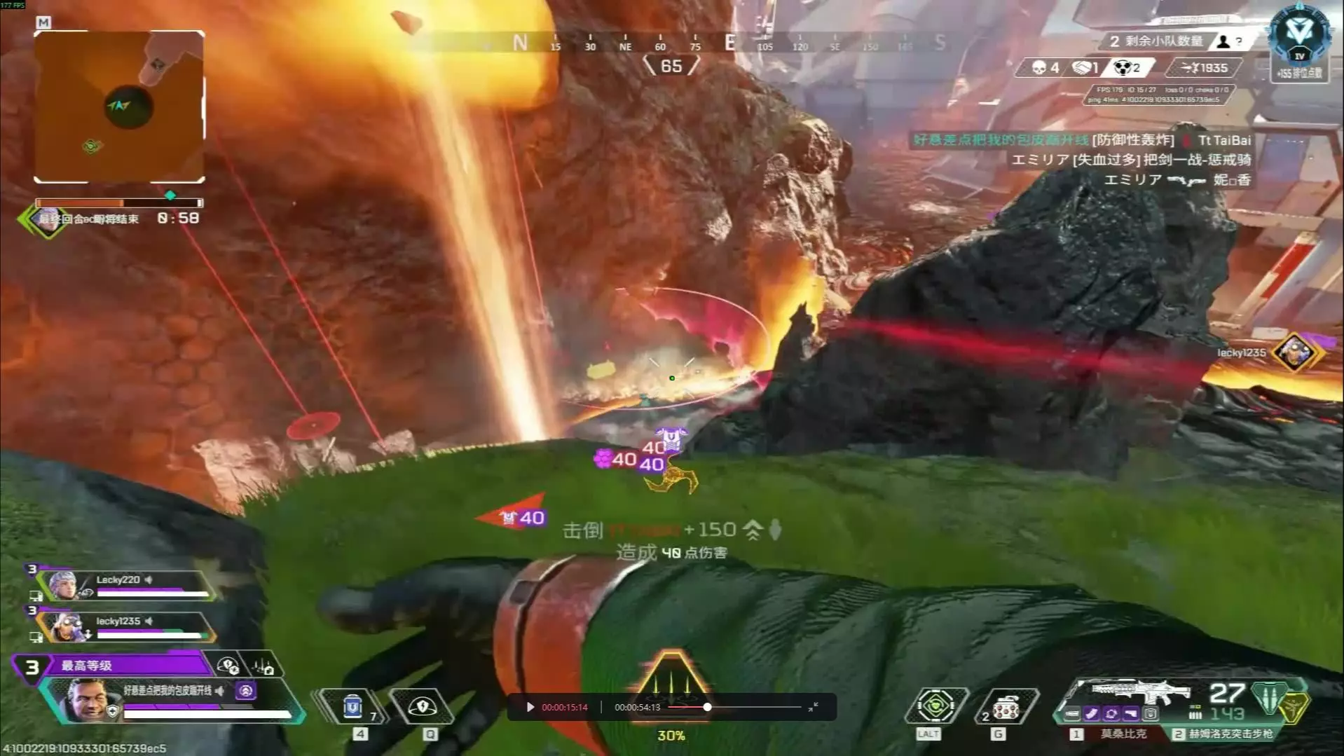 这是《Apex英雄》的游戏对战画面,玩家在对局中精准射击,成功击倒敌人,展示了游戏里的精彩对战瞬间,枪械手感表现出色。