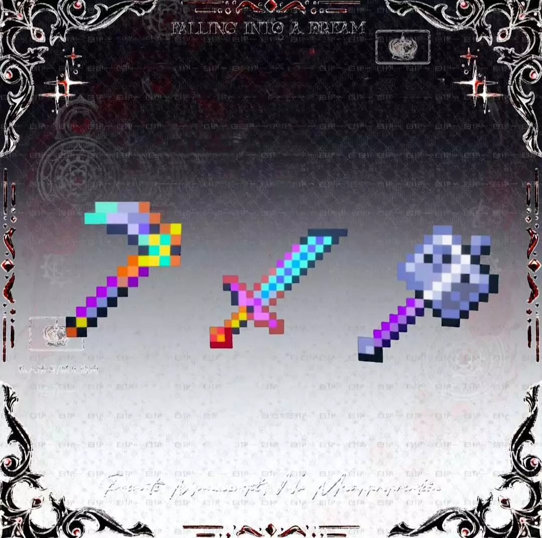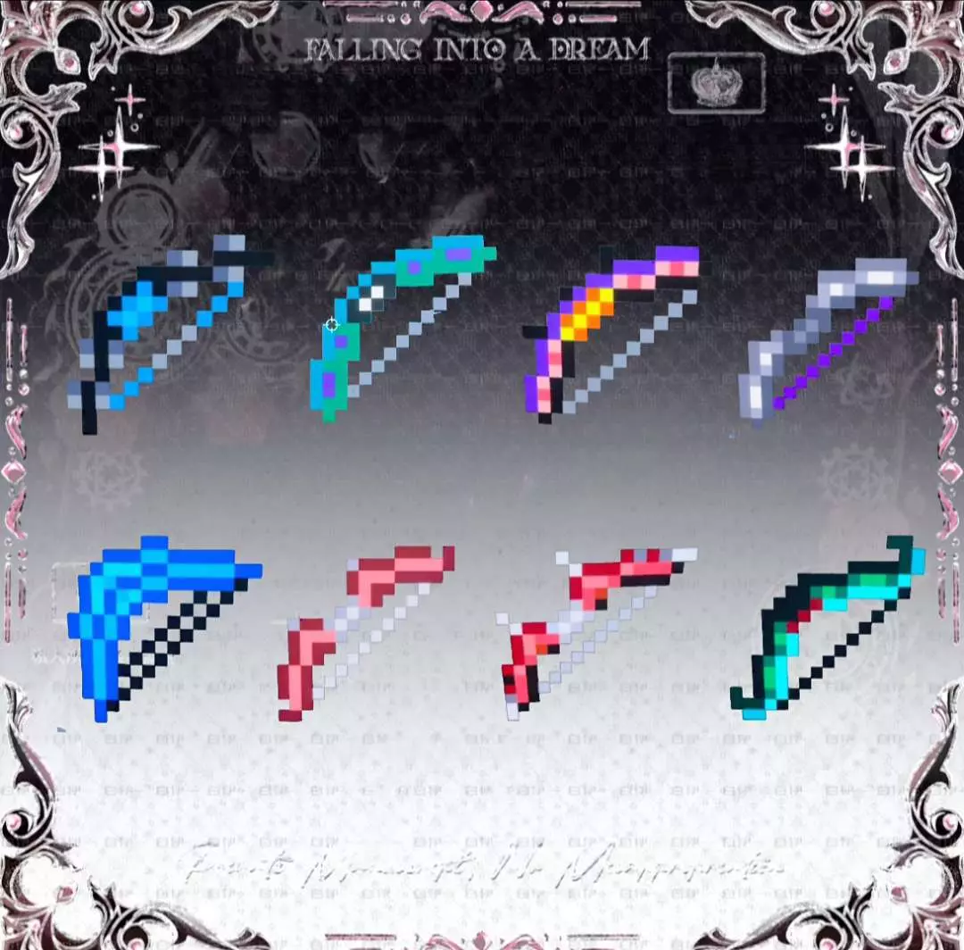 这是一篇在造物岛社区发布的我的世界模组制作帖,作者展示了自制的多款像素风格武器,包括剑、弓、镰刀等,这些武器已上传至素材商店,部分可1币购买,作者申请精华帖。