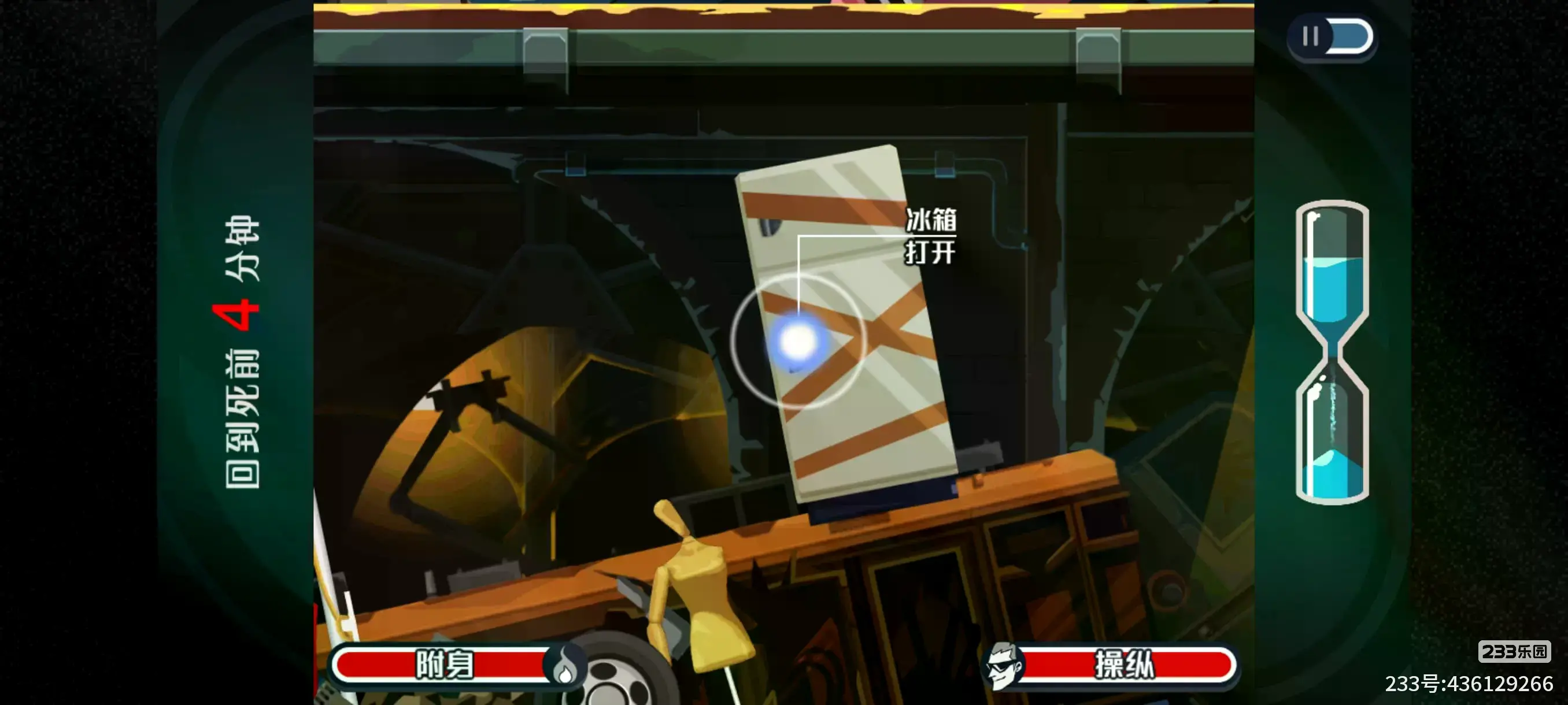 3.接着附身到站立的人体摩托身上,再附身到冰箱上并操纵打开冰箱让搅拌机掉落出来