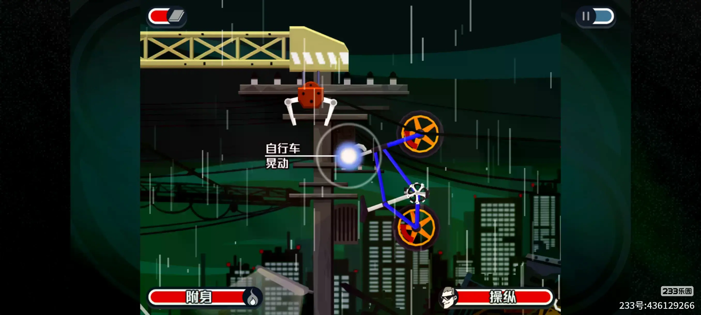 12.过完对话,附身到自行车脚把手上移动自行车靠近雨伞