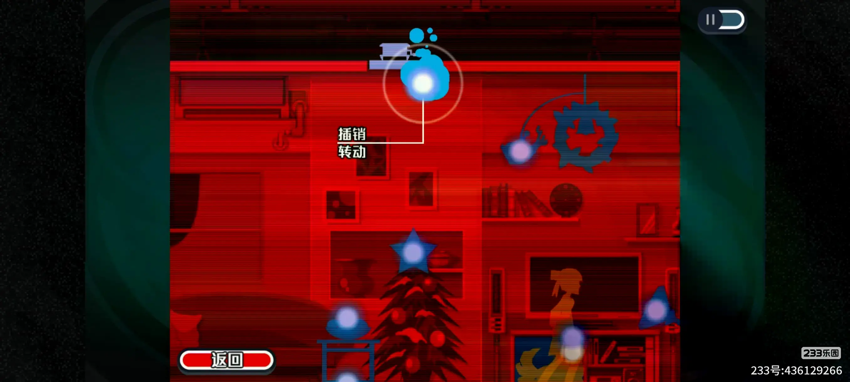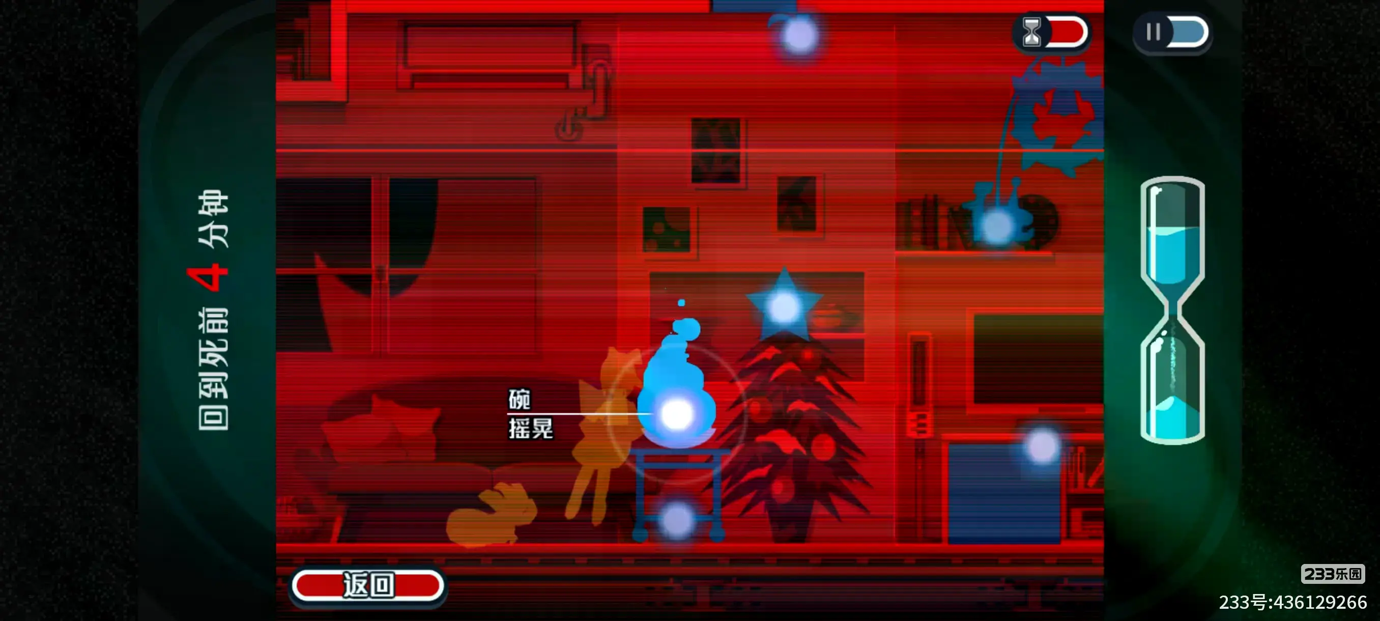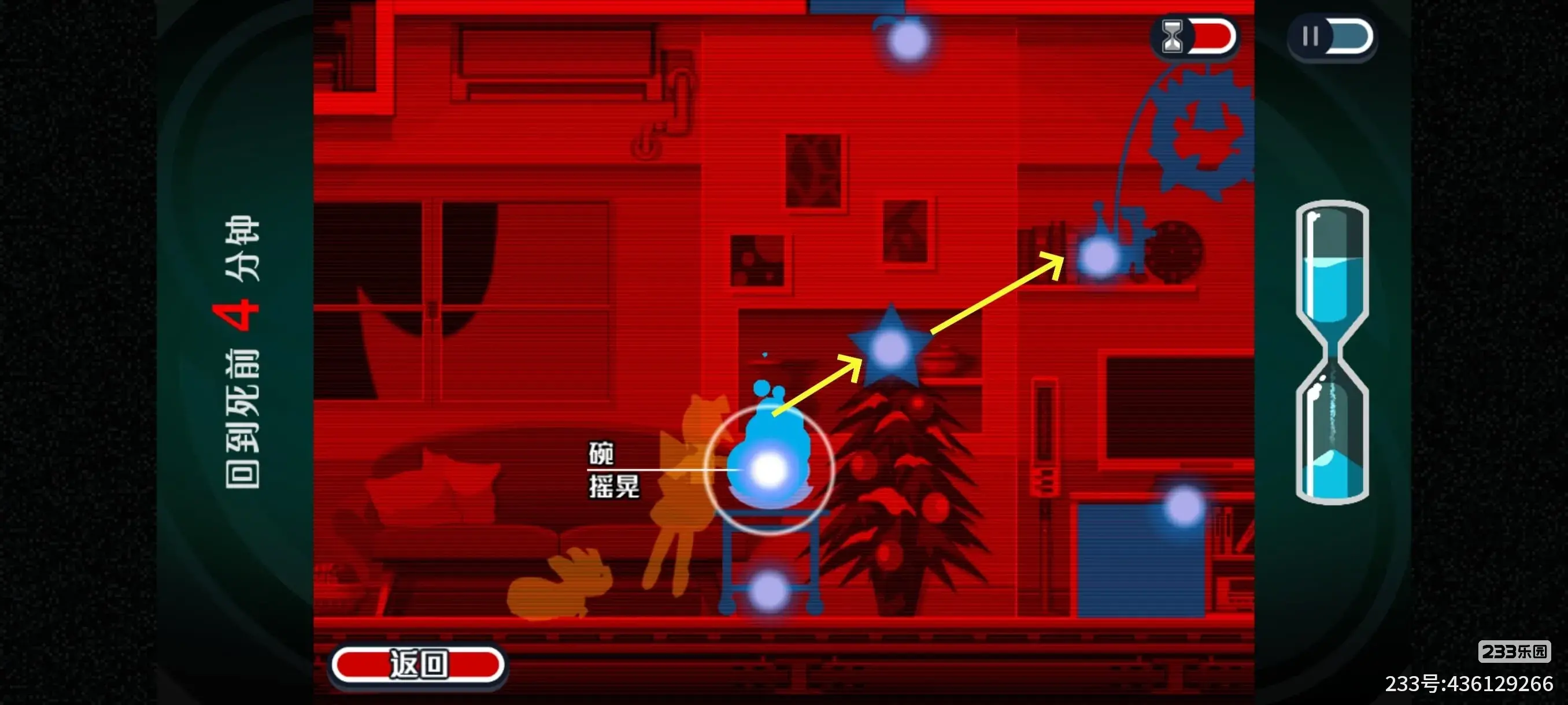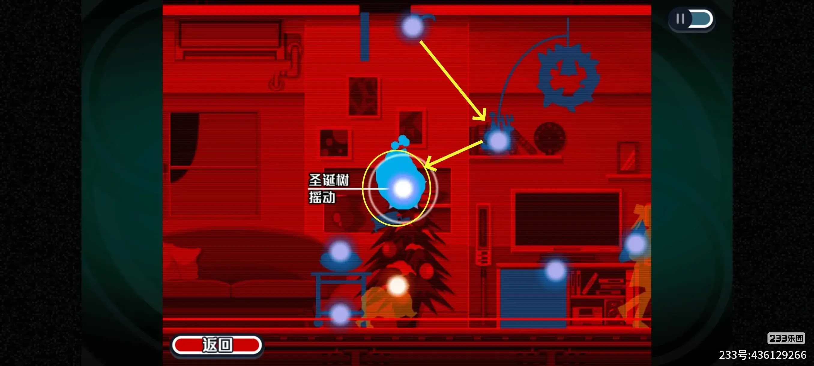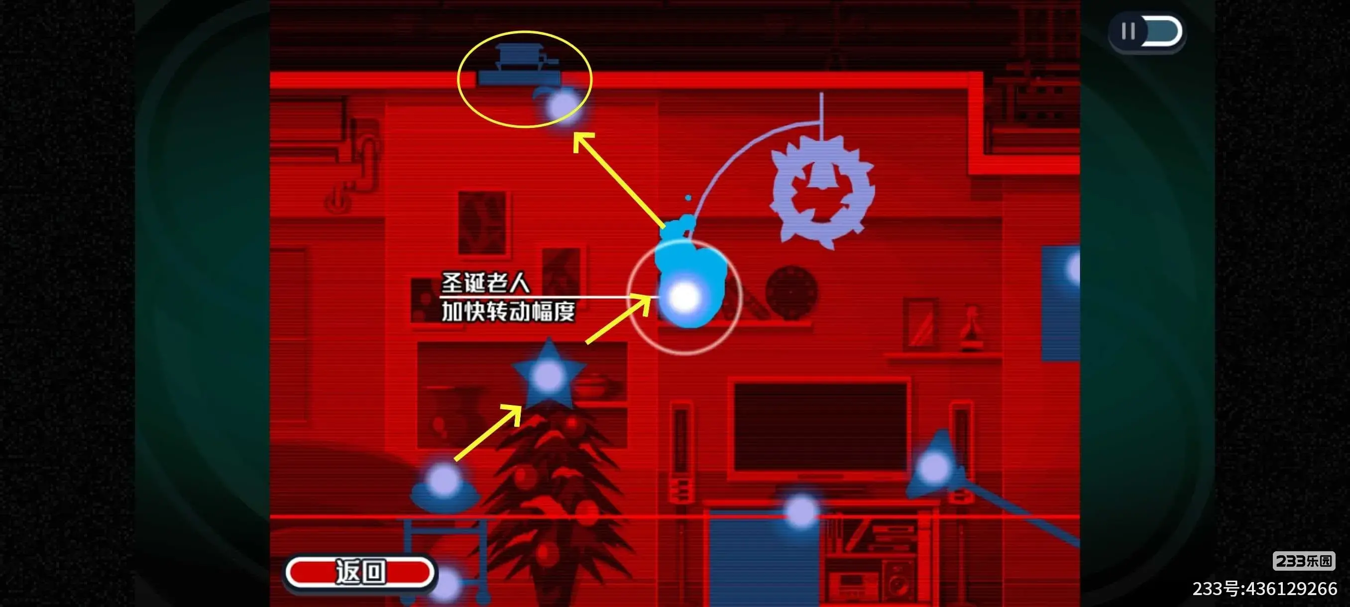 然后立马从碗经过星星附身到旋转的圣诞老人玩具什么(下图2,此处圣诞老人会缓慢旋转,我们在附身界面的时候时间会暂停,所有需要点右下角的返回,让圣诞老人旋转,等靠近我们后立马附身上去)