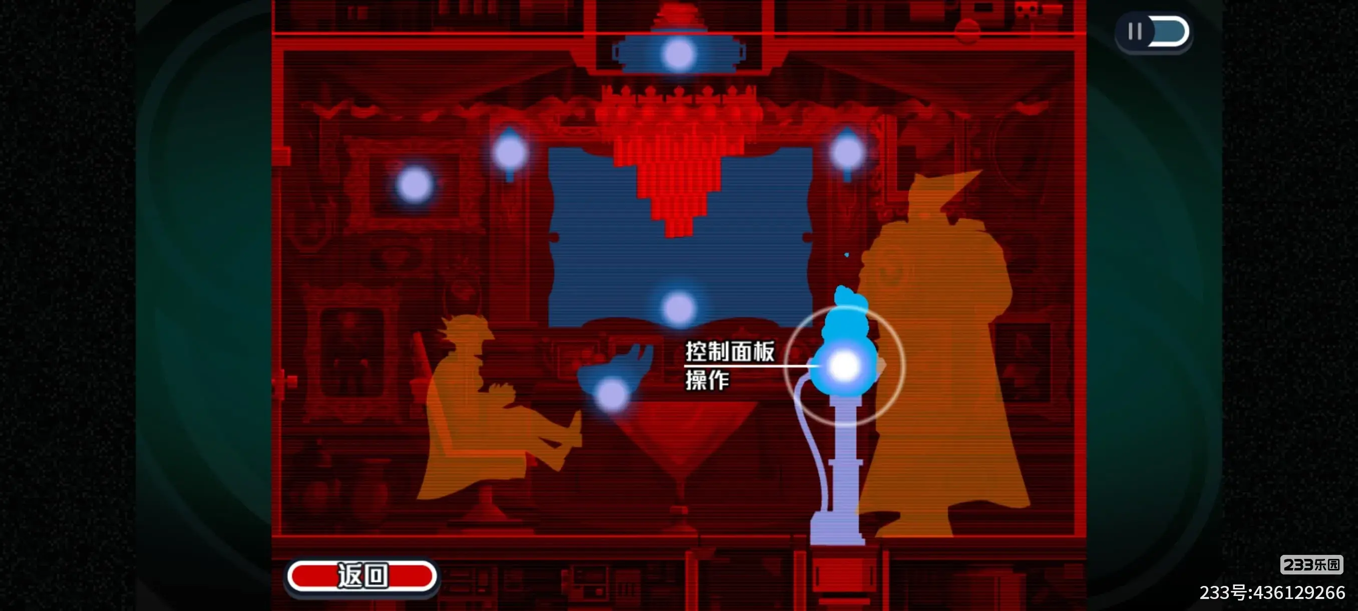 3.等这两个人把屏幕关掉后,我们就能从画作先附身到桌子上的水果,再附身到控制面板上并操作