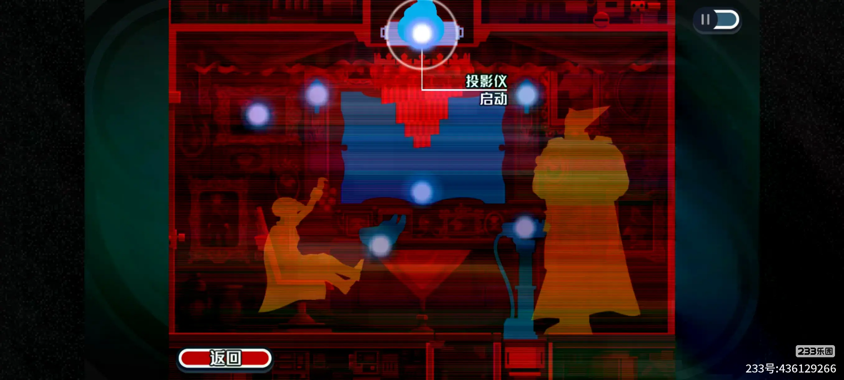 2.等敌人把文件放回去后,我们附身到投影仪上(下图一),并启动投影仪