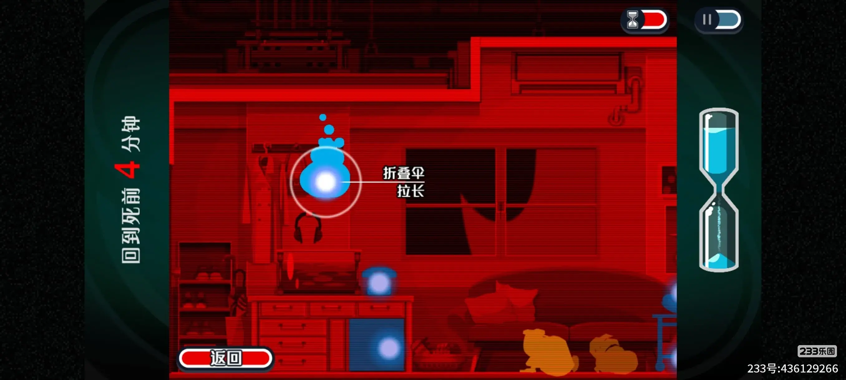 6.时光回溯的剧情过后,我们先附身到这个折叠伞上,等小女孩拿下耳机还没拿稳的时候就操作拉长折叠伞