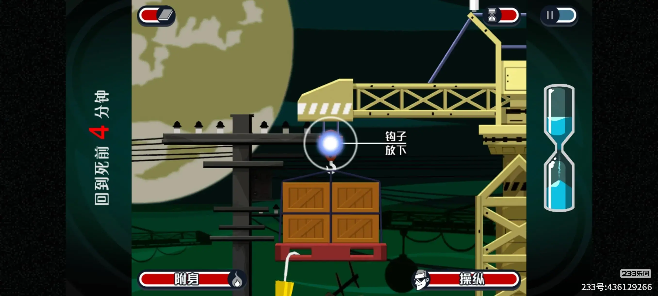 16.道闸升起后,我们一路往上移动,附身到钩子处,操作钩子放下就能砸死刺客