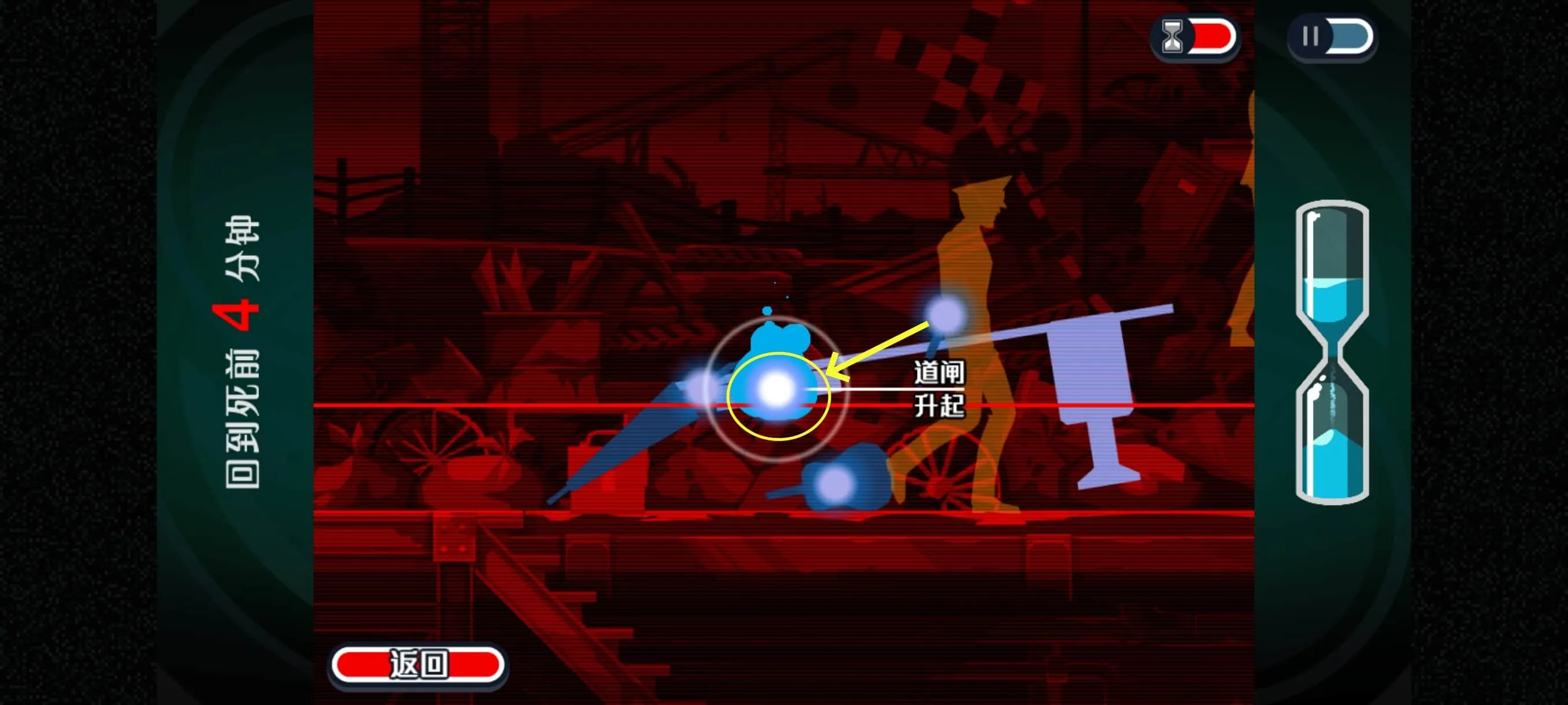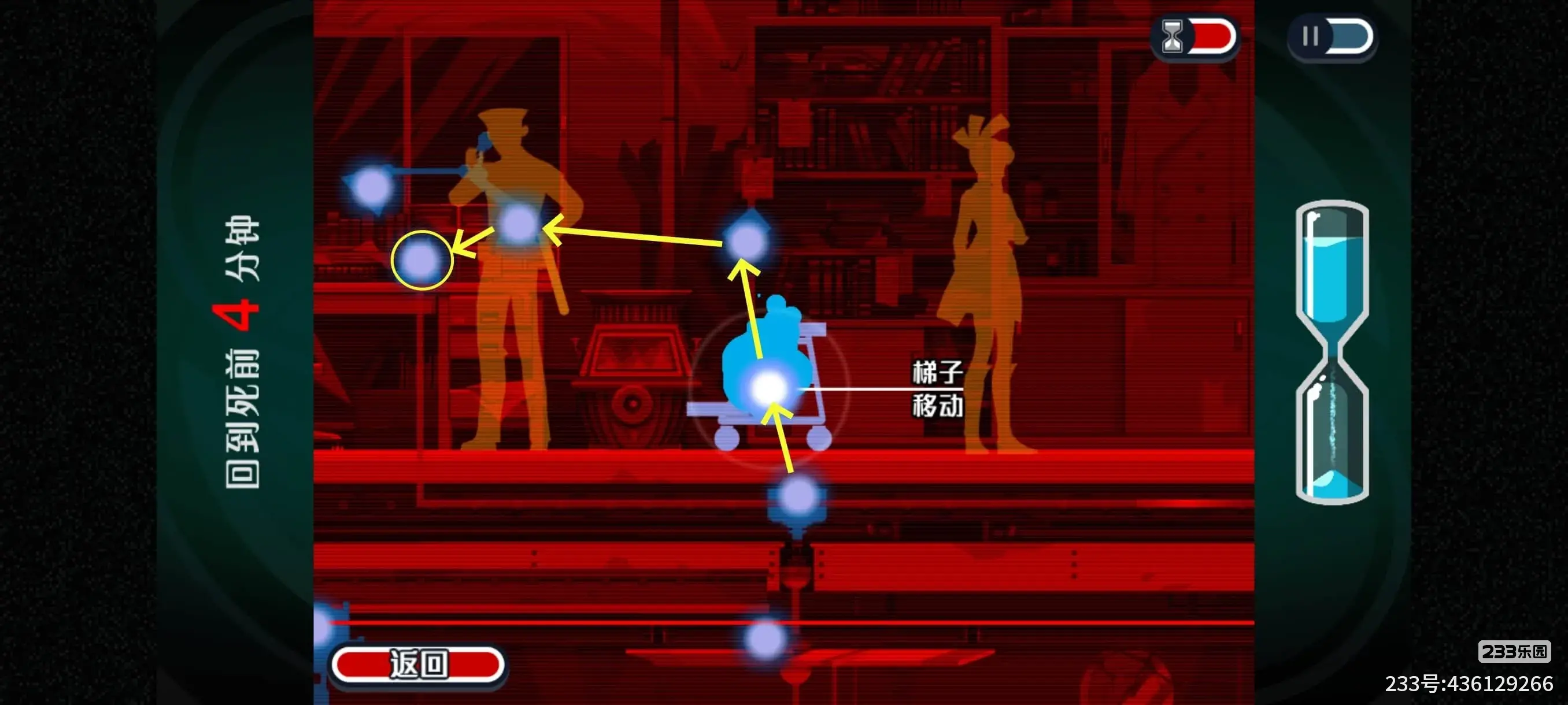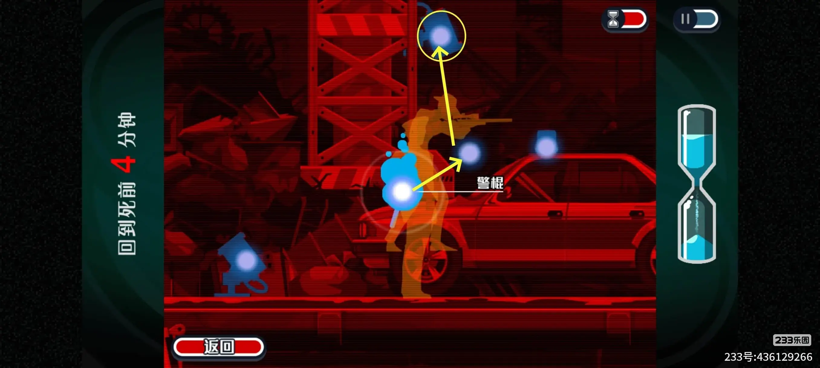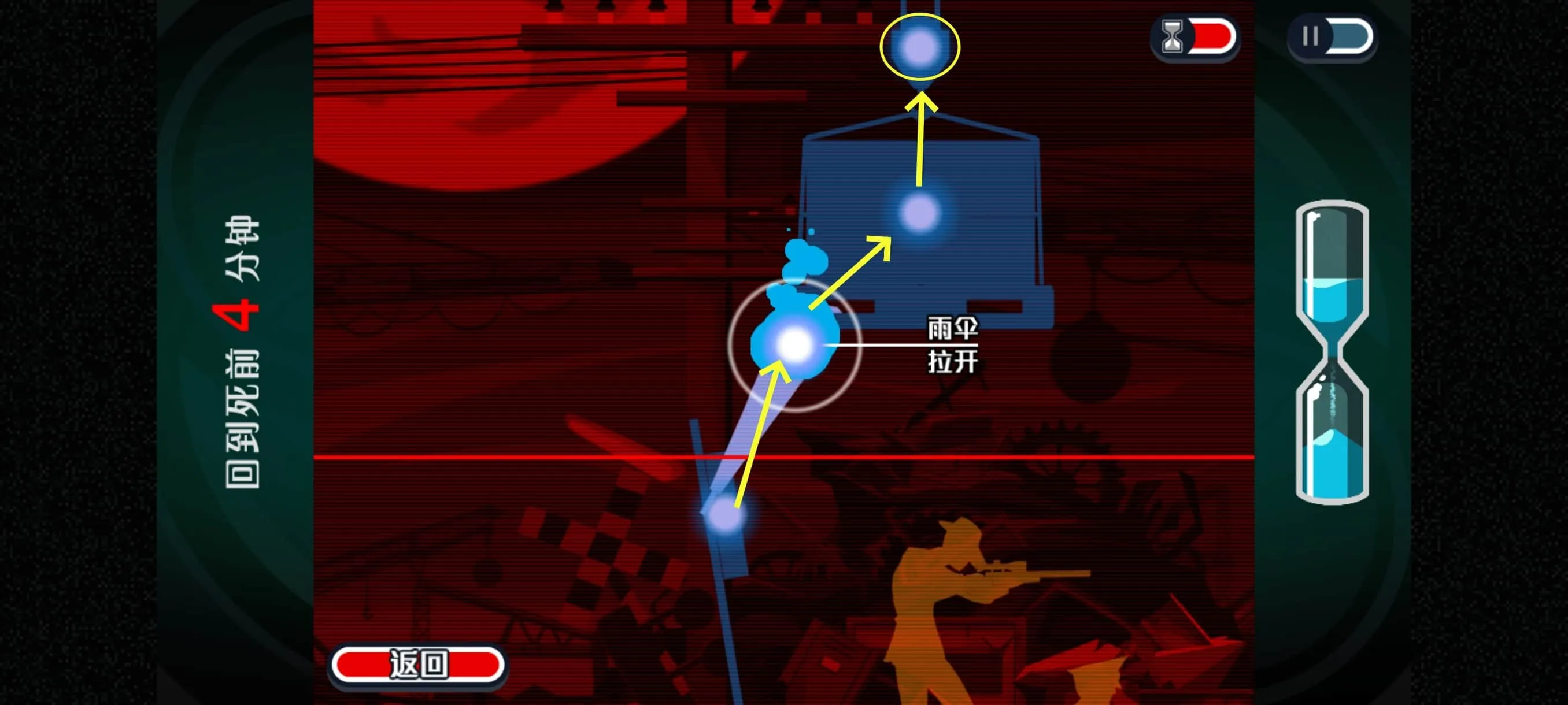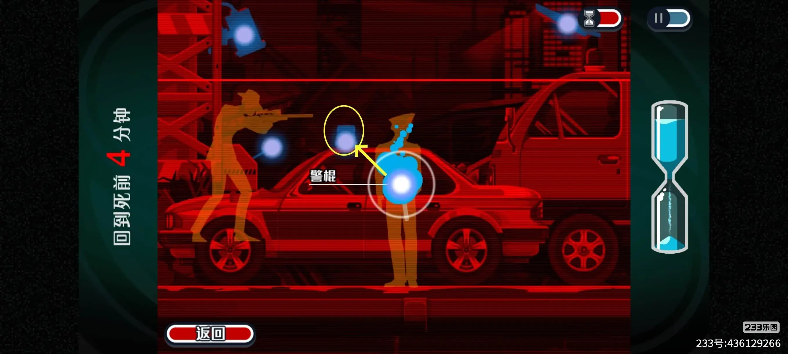 此处需要在这个警察的一个来回完成,要不然时间拖久了刺客就开枪了。不过警察走到很慢,一个来回完成应该有手就行