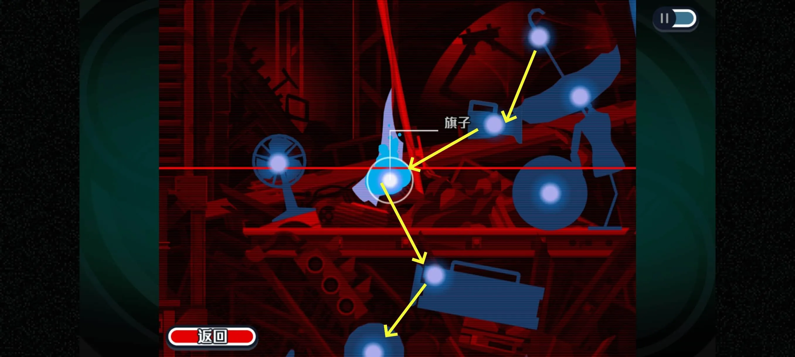 打开电风扇后立马附身到旁边的旗子处,等电风扇吹过来我们就能顺着旗子上到顶处(下图2)