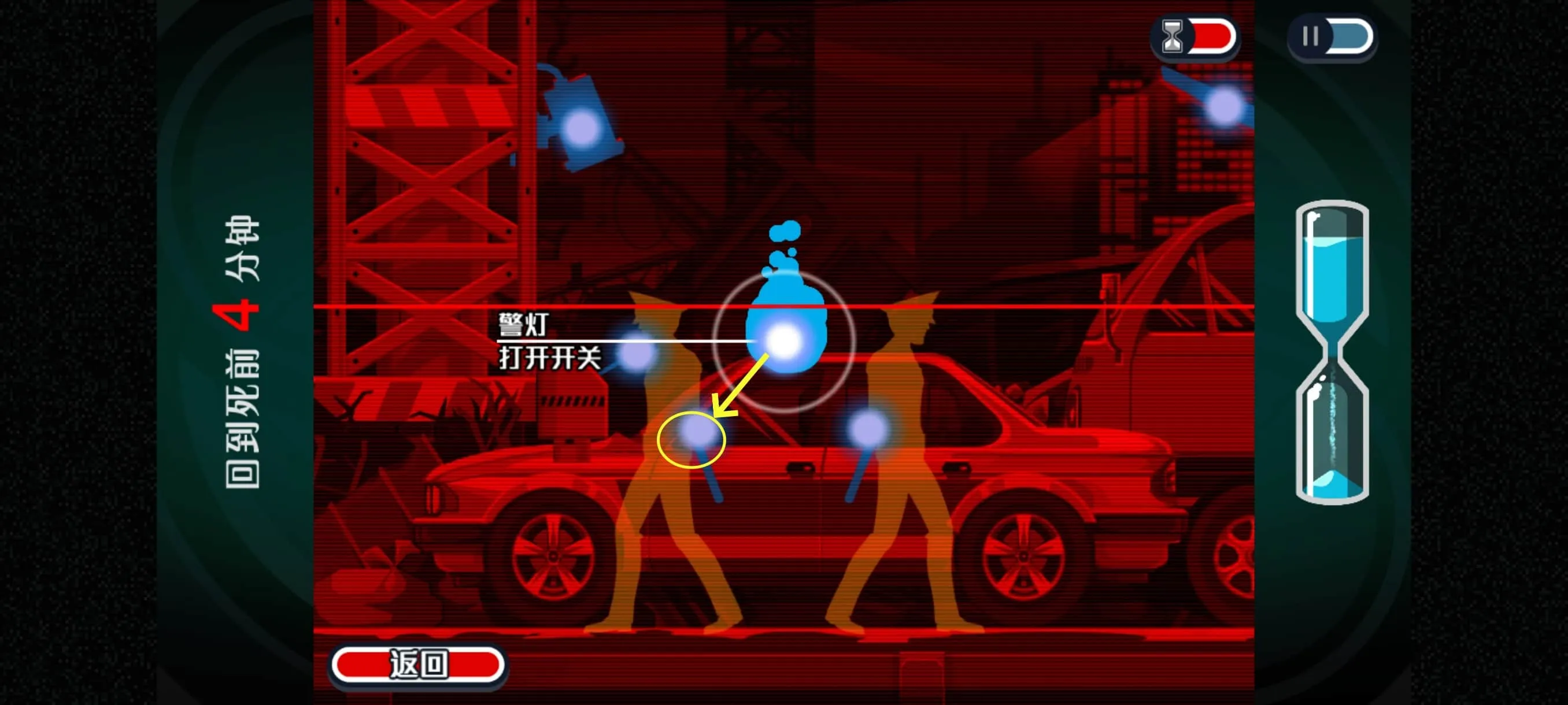 14.关闭这个地面探照灯后,等警察往回走的时候,我们再附身到其警棍上(下图1)