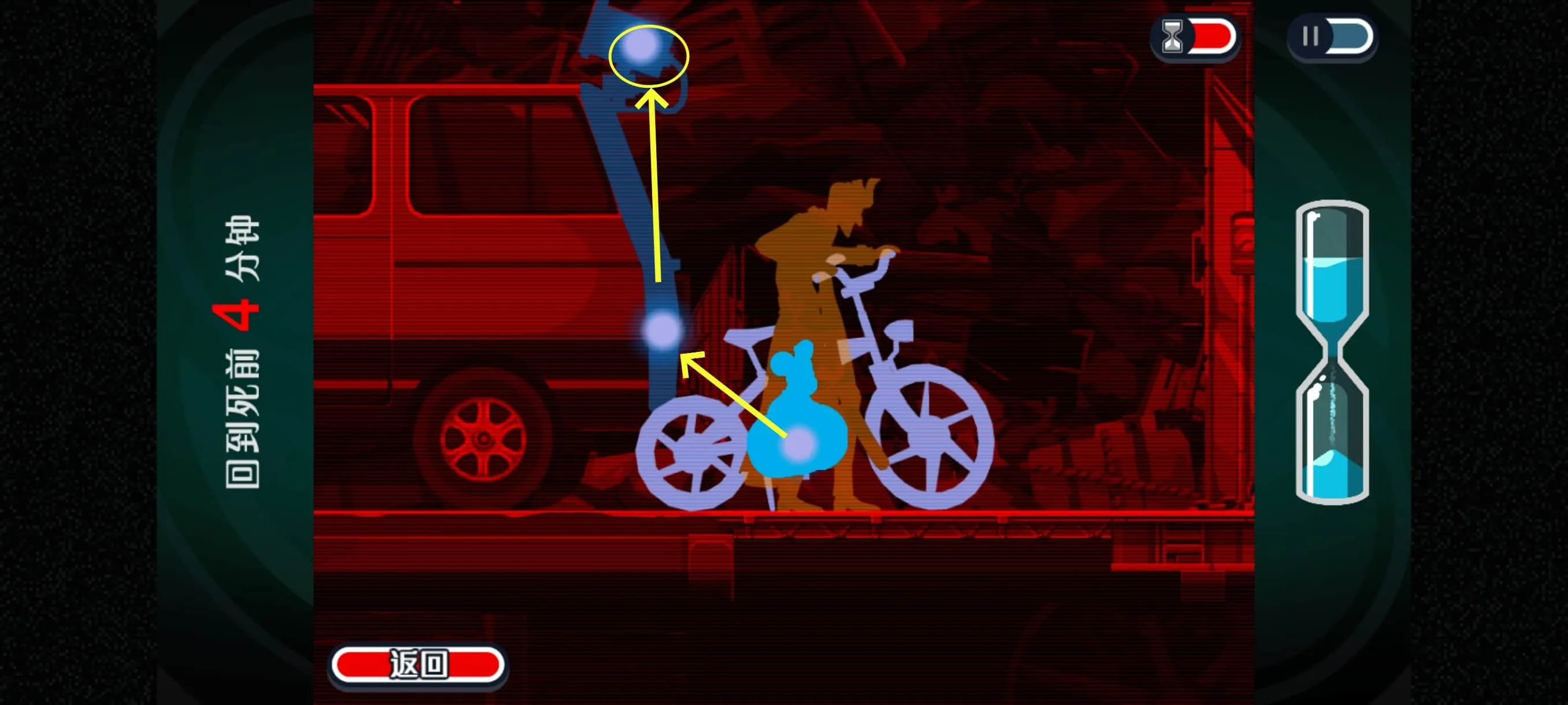 2.时间回溯后,先从凛音身上挪动到旁边的梯子处,然后点击凛音头上的气泡,触发对话剧情
