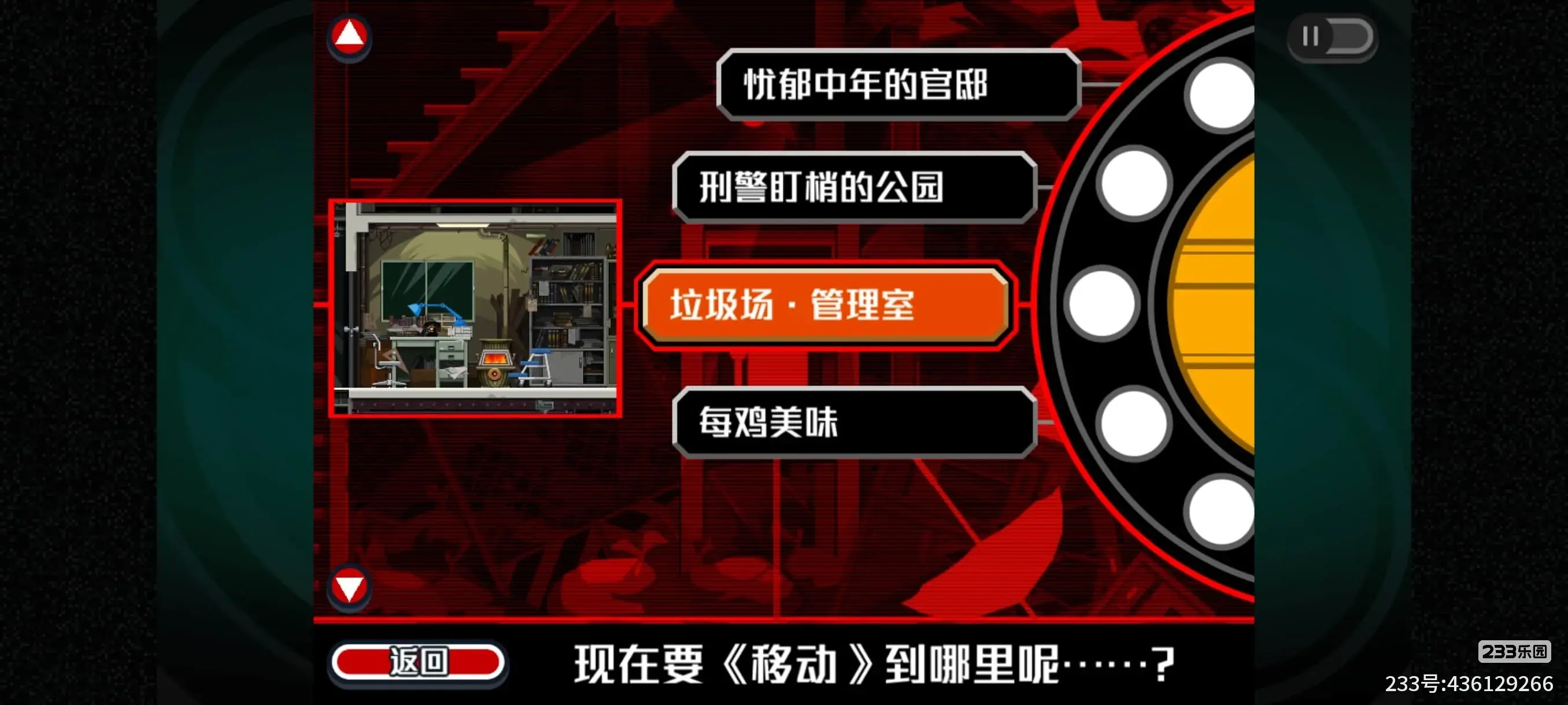 18.接着再顺着下图的路线,一路附身到最下面的电话上,回到垃圾场管理室,本章就完结了