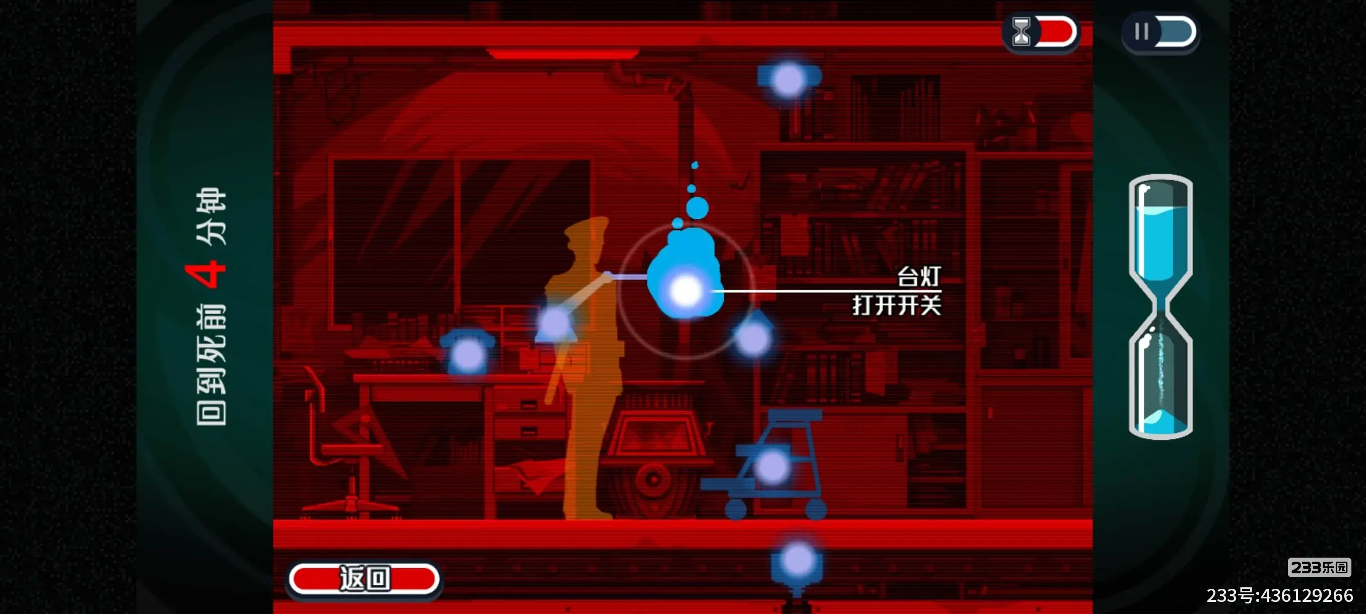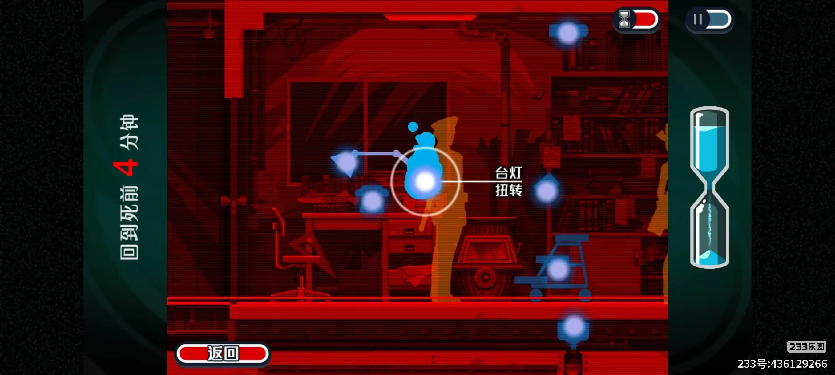 4.警察接完电话后,我们附身到台灯臂上,操作转动台灯,然后再附身到台灯头上打开台灯