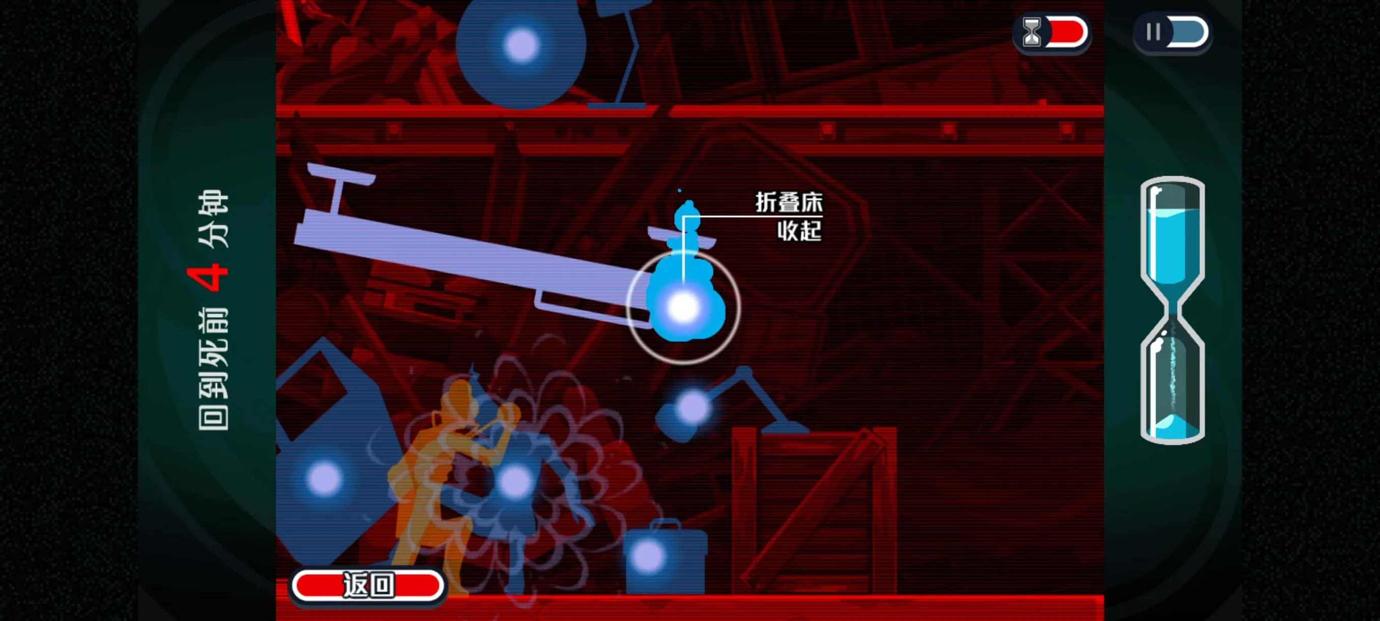 6.到垃圾场后,我们先往右边走到这个折叠床的位置,操作折叠床收起