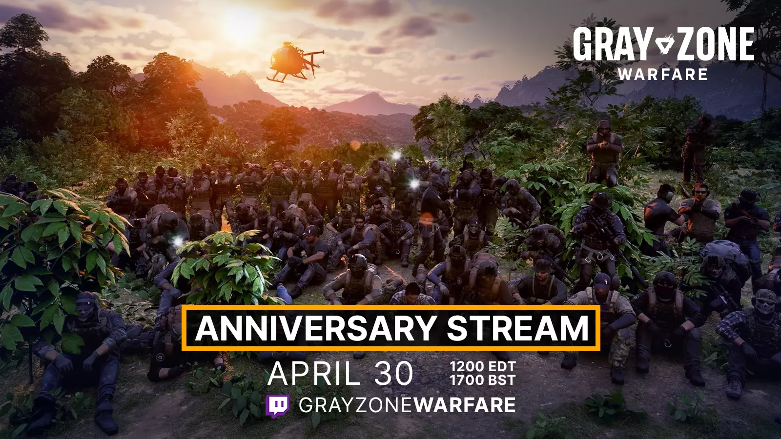 大家好, 和我们一起通过一场特别直播来庆祝《灰色地带战争》的第二次抢先体验周年庆吧。 届时,《灰色地带战争》的开发者将在直播中回答大家的问题,我们还会举办一场有趣的游戏内活动,与社区领袖、游戏管理员以及部分内容创作者组队参与。 我们将为社区开启多台自定义服务器供大家参与。服务器容量有限,但部分玩家将有机会加入。请留意活动参与方式的相关详情。我们将于周四4月30日在Twitch进行直播,具体时间为美国东部时间中午12:00、英国夏令时间下午5:00、欧洲中部时间下午6:00。