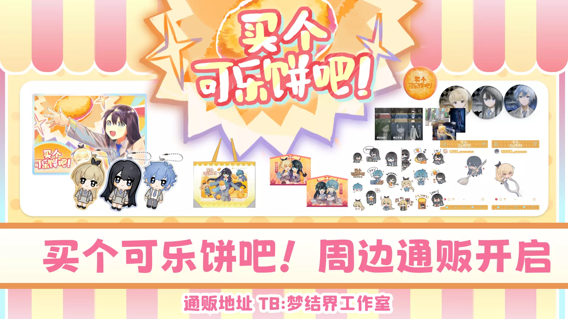 感谢两位老师的用心创作! ※周边通贩即将开启! 之前我们曾推出过周边众筹项目,当时得到了很多朋友的支持,也有不少小伙伴后来告诉我们,当时没买到很遗憾。所以在两周年这个时间点,我们准备开启周边通贩,同时也开始筹备未来的新一轮的周边众筹计划! 上周我们发布了周边调查问卷,统计大家对于周边的想法,截至目前已经有超过1000位玩家参与填写!真的非常感谢大家的认真反馈和支持! 结合大家的意见,我们决定:【买个可乐饼吧!】官方周边通贩,将在淘宝店【梦结界工作室】上线!