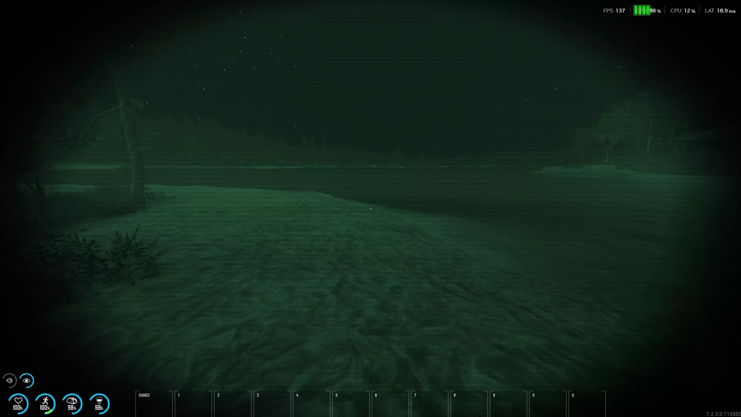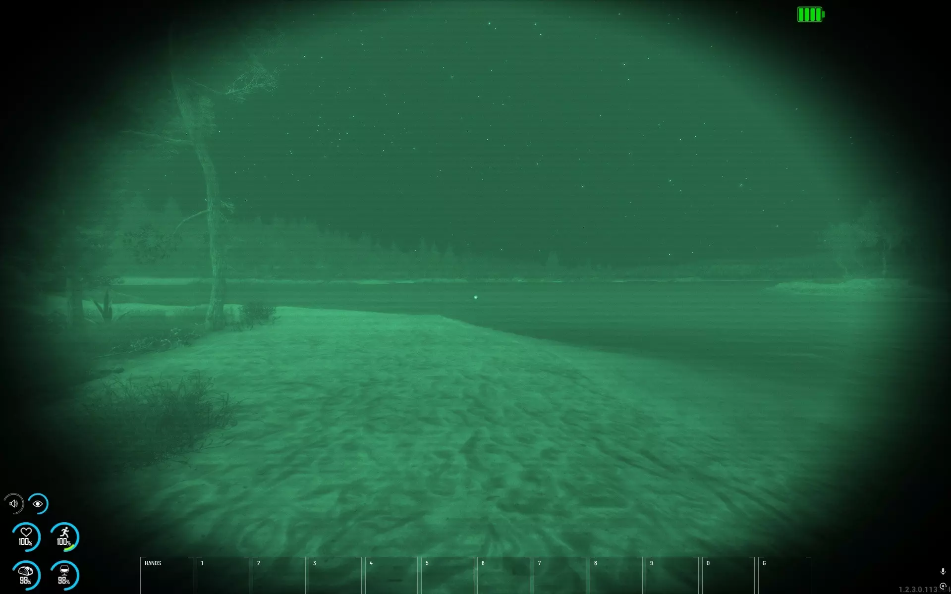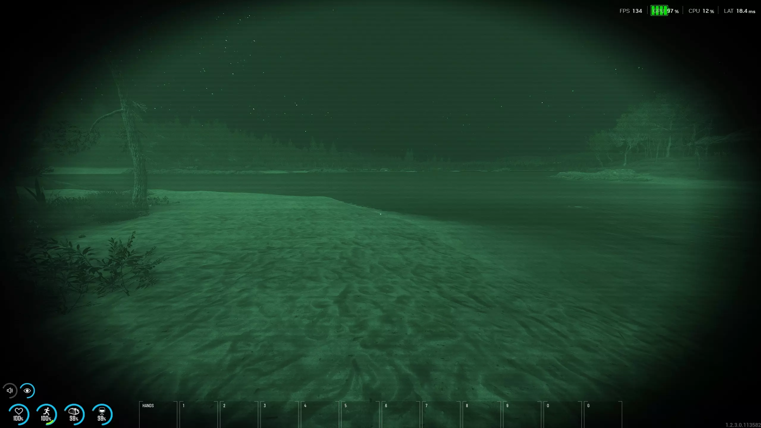 如果截图还不能满足你,我们还制作了一段展示这些光照改进的视频,记得去看看: 说到光照,我们还改进了夜视仪的显示效果,使其看起来不那么“模糊发白”。以下是改进前后的对比图: 改进前 - 伽马值设为2.0