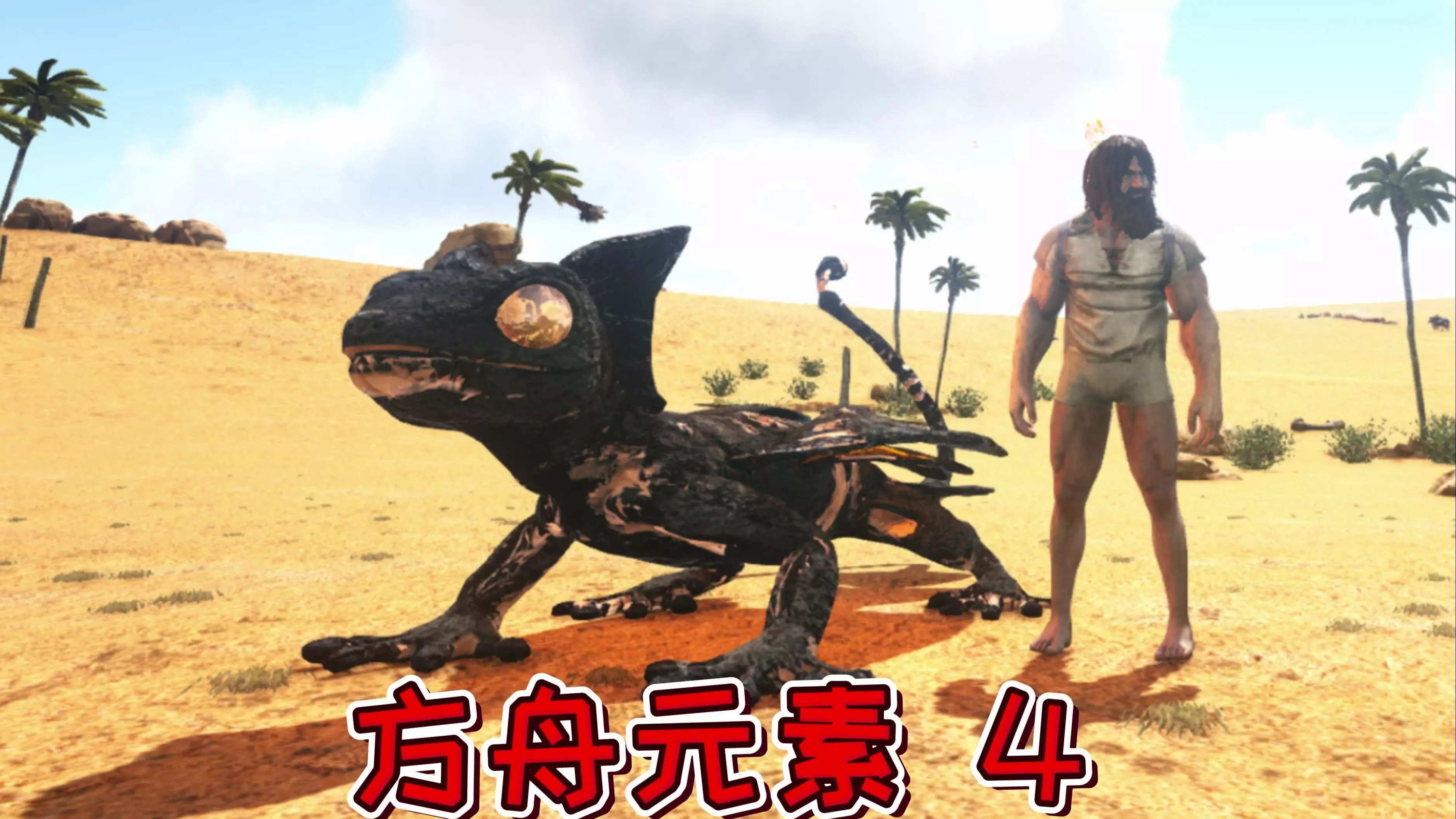 这是《方舟:生存进化》崩溃6模组的游戏内容,玩家在沙漠场景中,先使用麻醉道具捕获汲血鬃狮,还将其升级后加入打BOSS小队,之后准备挑战深渊守卫者BOSS。